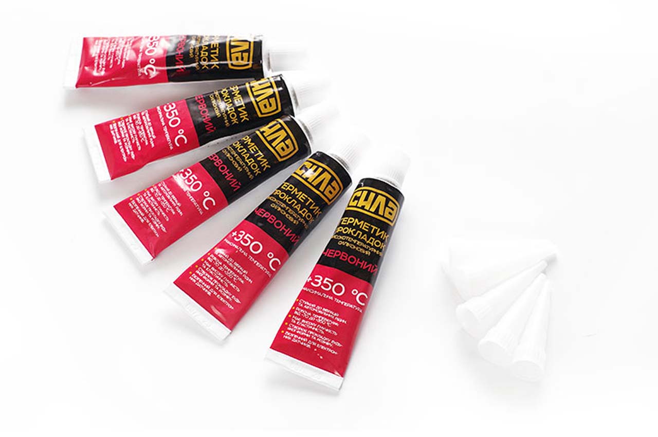 Герметик силіконовий високотемпературний Сила - 25г червоний призначений для ремонту та заміни прокладок, що використовуються при високих температурах від -70 до +350°С. 100% Натуральний силікон стійкий до автомобільних рідин. Безпечний для електронних датчиків. Зберігає гнучкість та еластичність після висихання.