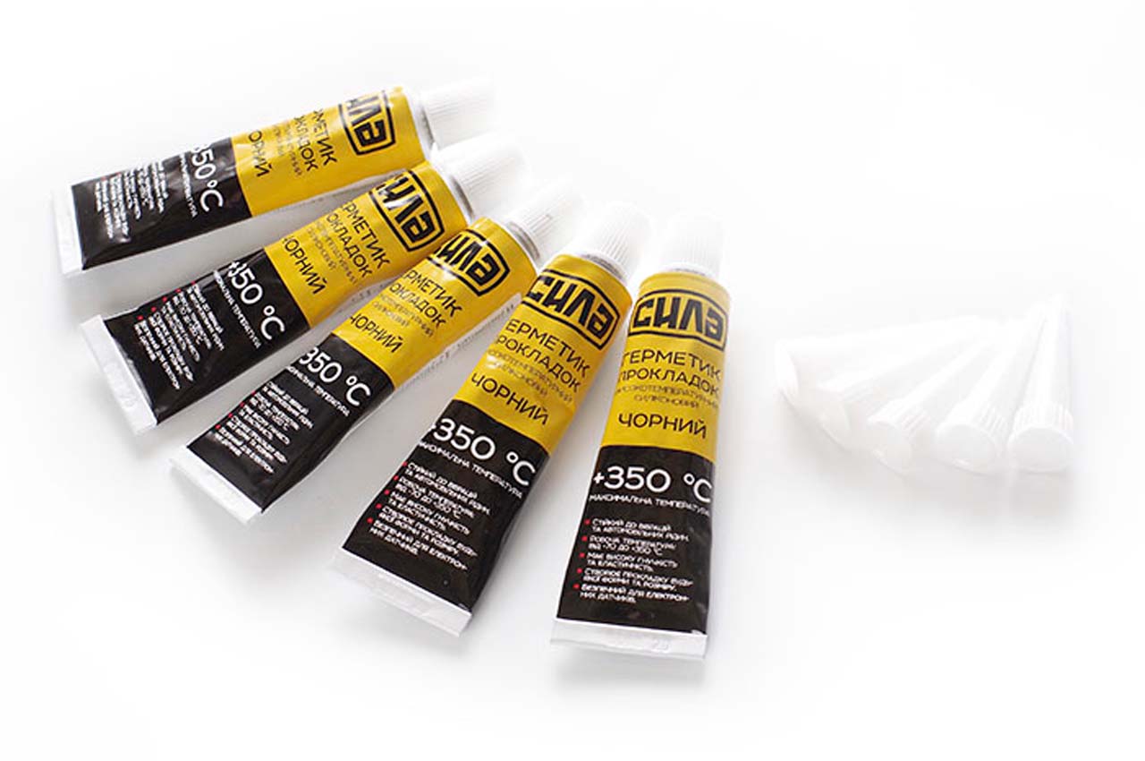 Герметик силіконовий високотемпературний Сила - 25г чорний призначений для ремонту та заміни прокладок, що використовуються при високих температурах від -70 до +350°С. 100% Натуральний силікон стійкий до автомобільних рідин. Безпечний для електронних датчиків. Зберігає гнучкість та еластичність після висихання.