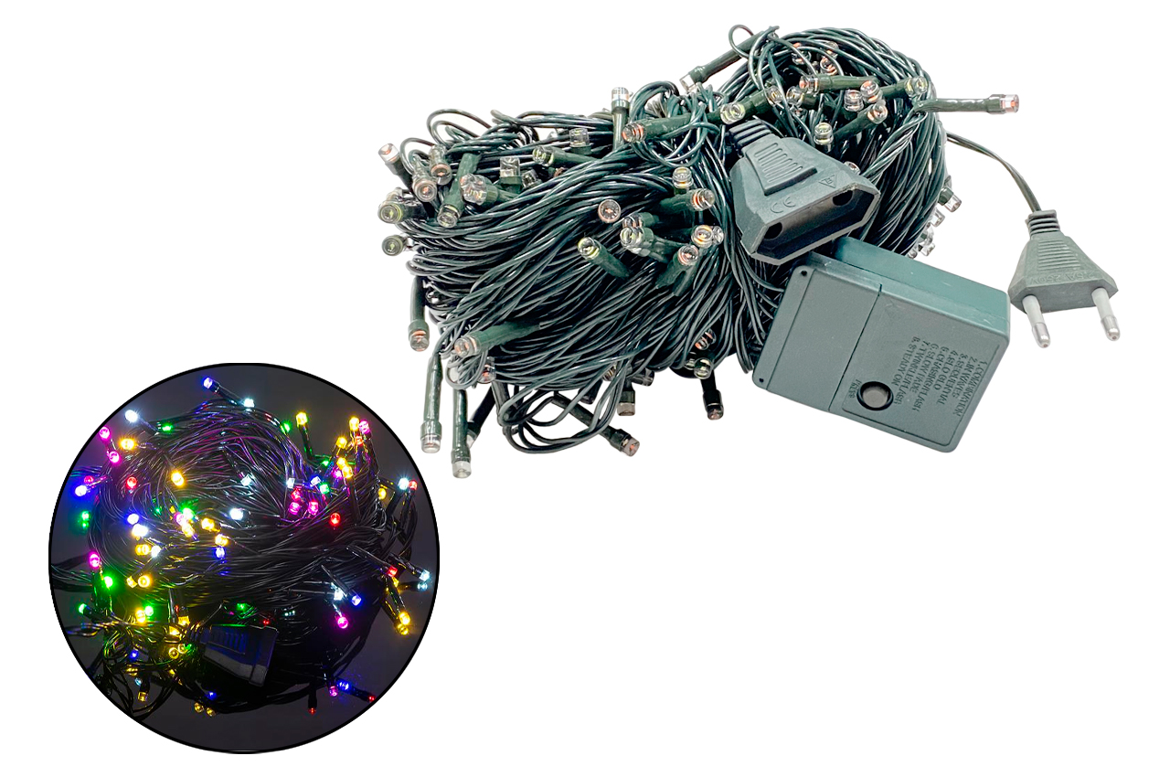 Гірлянда електрична мультіколір — яскрава святкова прикраса для створення чарівної атмосфери. Завдяки 100 різнокольоровим діодам гірлянда рівномірно освітлює простір і додає тепла будь-якому інтер’єру. Має 8 режимів світіння, що дозволяють змінювати інтенсивність і стиль мерехтіння. Підключається безпосередньо до мережі 220V, споживає мінімум енергії.