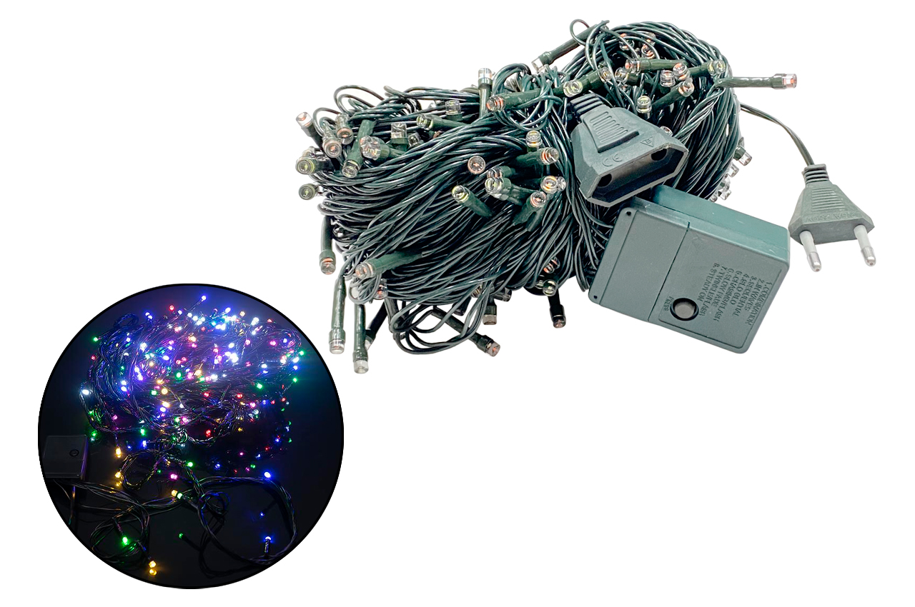 Гірлянда електрична мультіколір — яскрава святкова прикраса для створення чарівної атмосфери. Завдяки 320 різнокольоровим діодам гірлянда рівномірно освітлює простір і додає тепла будь-якому інтер’єру. Має 8 режимів світіння, що дозволяють змінювати інтенсивність і стиль мерехтіння. Підключається безпосередньо до мережі 220V, споживає мінімум енергії.
