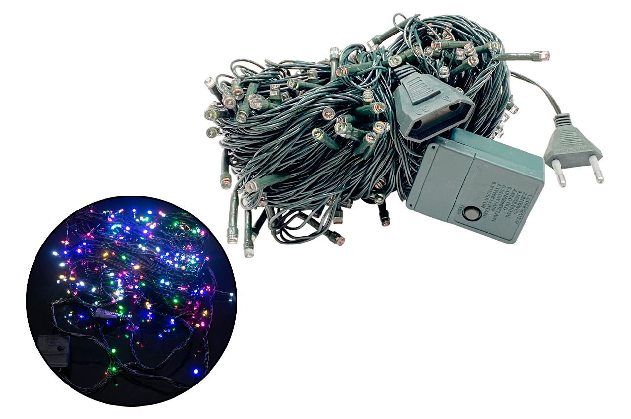 Гірлянда електрична мультіколір — яскрава святкова прикраса для створення чарівної атмосфери. Завдяки 400 різнокольоровим діодам гірлянда рівномірно освітлює простір і додає тепла будь-якому інтер’єру. Має 8 режимів світіння, що дозволяють змінювати інтенсивність і стиль мерехтіння. Підключається безпосередньо до мережі 220V, споживає мінімум енергії.
