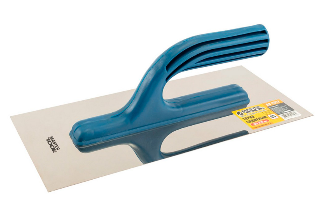 Затирка з нержавіючої сталі без зубів. Оснащена ергономічної пластмасовою ручкою. Призначена для рівномірного нанесення і розподілу штукатурних, шпаклювальних і клейових сумішей по поверхні. Розмір затірки: 270 x 125 мм