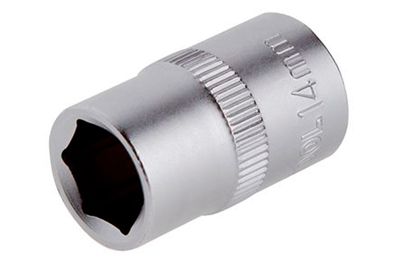 Головка торцева використовується для монтажу та демонтажу різних шестигранних різьбових з'єднань. Працює в парі з ручними інструментами з приєднувальним квадратом 1/2": з тріскачками, комірами, подовжувачами, викрутками та ін. Головка виготовлена із загартованої вуглецевої сталі із сатин-хромовим покриттям, стійким до корозії. Розмір головки 14 мм.