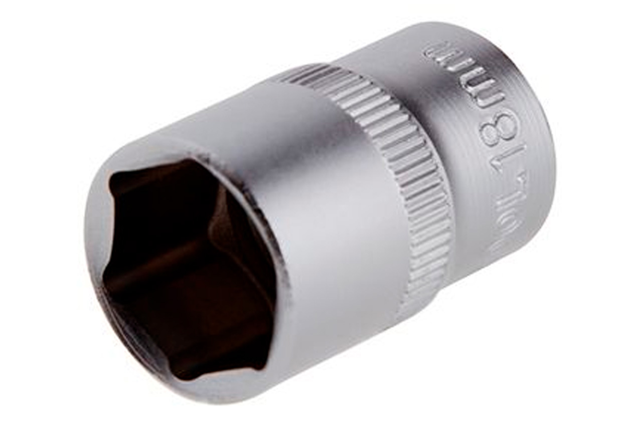 Головка торцева використовується для монтажу та демонтажу різних шестигранних різьбових з'єднань. Працює в парі з ручними інструментами з приєднувальним квадратом 1/2": з тріскачками, комірами, подовжувачами, викрутками та ін. Головка виготовлена із загартованої вуглецевої сталі із сатин-хромовим покриттям, стійким до корозії. Розмір головки 18 мм.