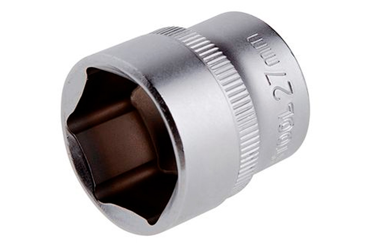 Головка торцева використовується для монтажу та демонтажу різних шестигранних різьбових з'єднань. Працює в парі з ручними інструментами з приєднувальним квадратом 1/2": з тріскачками, комірами, подовжувачами, викрутками та ін. Головка виготовлена із загартованої вуглецевої сталі із сатин-хромовим покриттям, стійким до корозії. Розмір головки 27 мм.