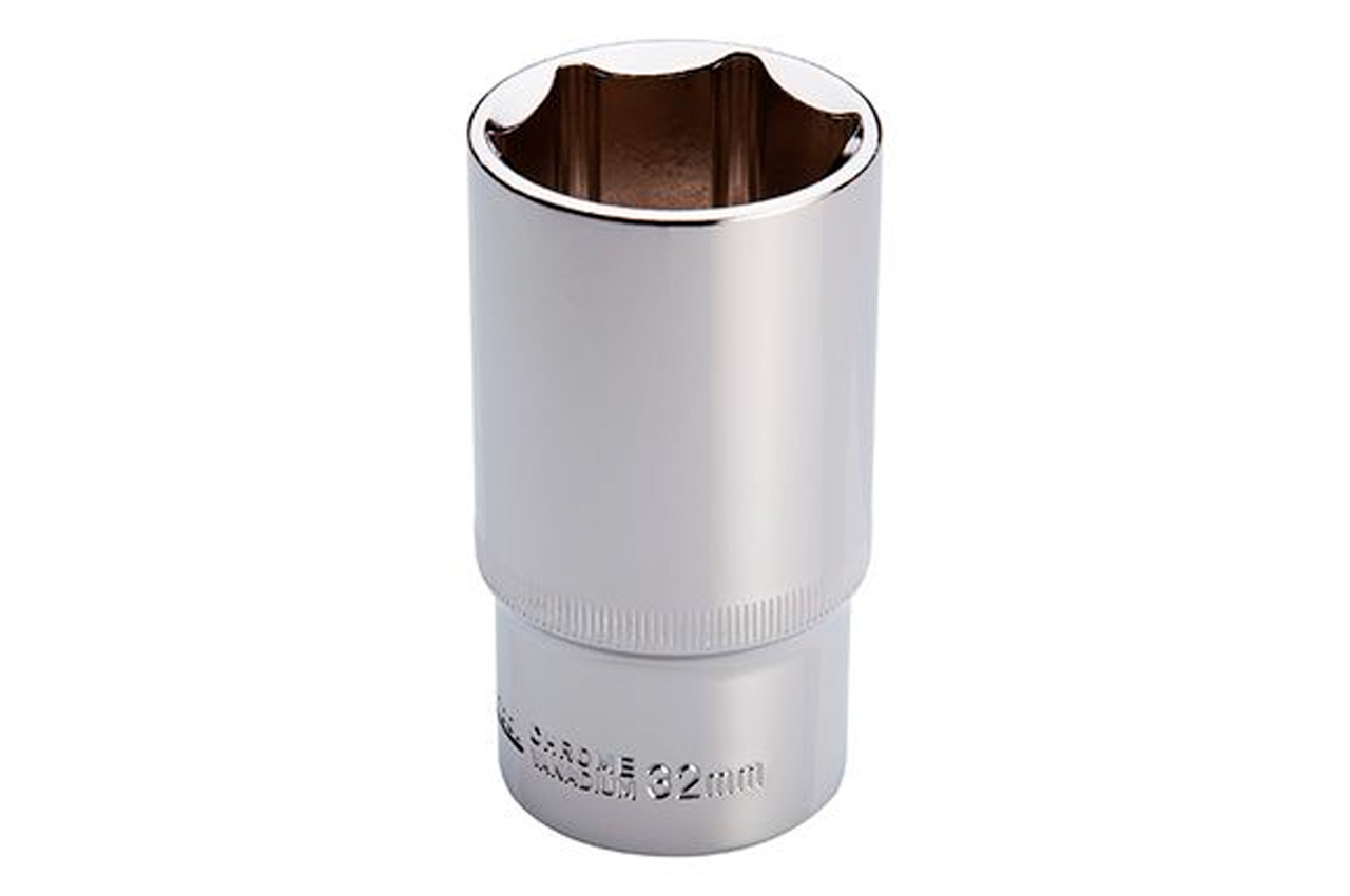 Шестигранна головка ET-0132 виконана з хром-ванадієвої сталі, що надає їй високу міцність, пружність і зносостійкість. Завдяки шестигранною формі досягається висока площу зіткнення з закручується елементом, що дозволяє застосовувати великий крутний момент і зводить до мінімуму ймовірність "злизування" граней елемента кріплення. Довжина головки - 78 мм, що дозволяє застосовувати її при роботі з поглибленими деталями або кріпленням на виступаючих шпильках. Квадрат: 1/2 "; Розмір головки: 32 мм; Довжина головки: 78 мм