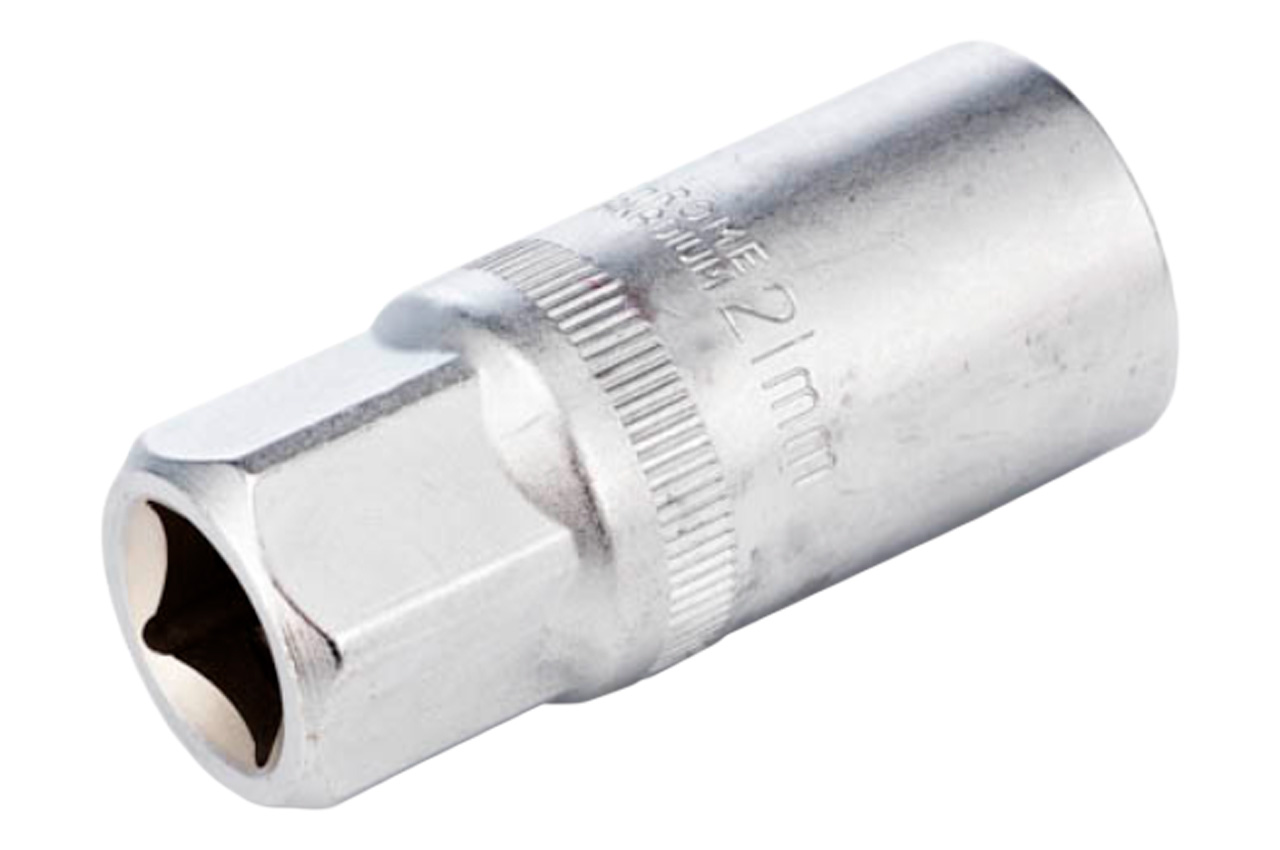 Головка свічкова Сила - призначена для монтажу / демонтажу свічок запалювання двигуна внутрішнього згоряння за допомогою ручного інструменту або гайковерта. Виготовлена їх хром-ванадієвої сталі, що забезпечує міцність і довговічність оснащення. Розмір 21 мм
