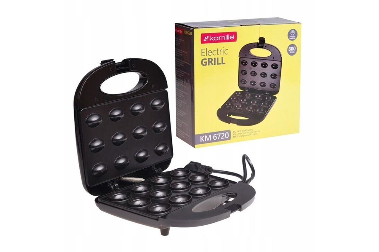 Класична горішниця Kamille KM-6720 дасть вам у домашніх умовах легко приготувати смачні та ароматні горішки з різними начинками. Горішниця має приємний дизайн корпусу чорного кольору, тому вона стане гарним і функціональним доповненням вашої кухні. Потужність агрегату становить 800 Вт, що дає змогу швидко приготувати смачні ласощі для своєї родини. За одне завантаження Ви зможете приготувати 12 половинок, а заправивши їх начинкою Ви отримаєте 6 горішків. Горішниця має оптимальну потужність для швидкого нагрівання та рівномірного розподілу тепла між двома пластинами. Пластини цієї моделі мають антипригарне покриття, що не тільки позитивно впливає на якість десерту, але й забезпечує легке обслуговування та догляд за пристроєм.