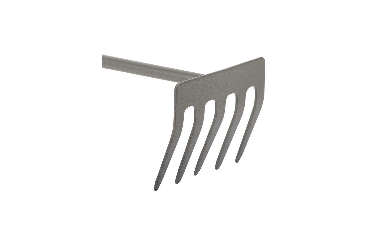 Садові граблі невеликого розміру знадобляться для різноманітних садово-городніх робіт. Завдяки своїй міцній конструкції використовуються для роботи з ґрунтом, вирівнювання, аерації та ін. Дана модель граблів виготовлена з надійної високоякісної сталі та покрита антикорозійною фарбою. Форма ручки повторює вигини долоні із підпальцевим упором. Робоча ширина граблів 85 мм.