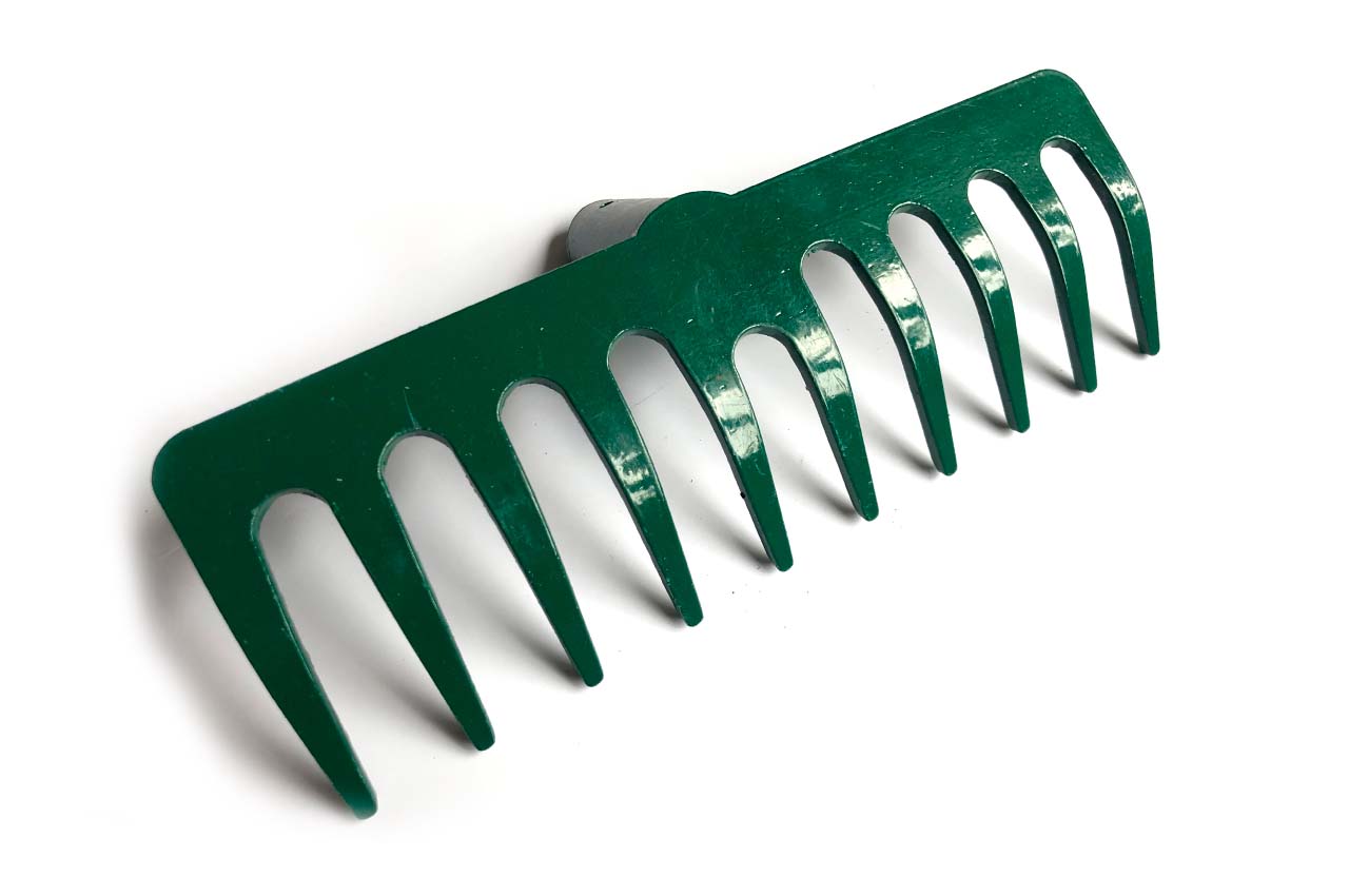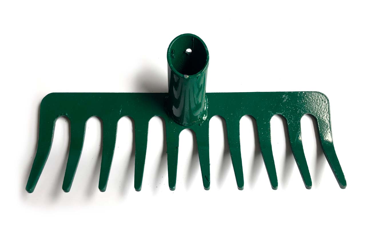Граблі з прямими зубами використовується для збирання гілок, листя, кореневищ, скошеної трави та іншого сміття, що виникає на ділянці. Часті зуби сприяють рівномірному розподілу та розпушування землі після скопування. Для виконання робіт металеву насадку із зубами необхідно закріпити на держаку