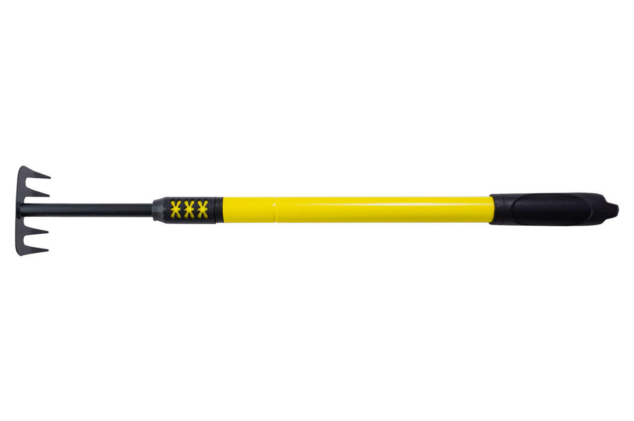 Садові граблі з 5 зубами та телескопічною ручкою - це практичний інструмент для догляду за ґрунтом, прибирання сміття та обробки невеликих садових ділянок Регульована довжина ручки дозволяє працювати комфортно та ефективно, знижуючи навантаження на спину.