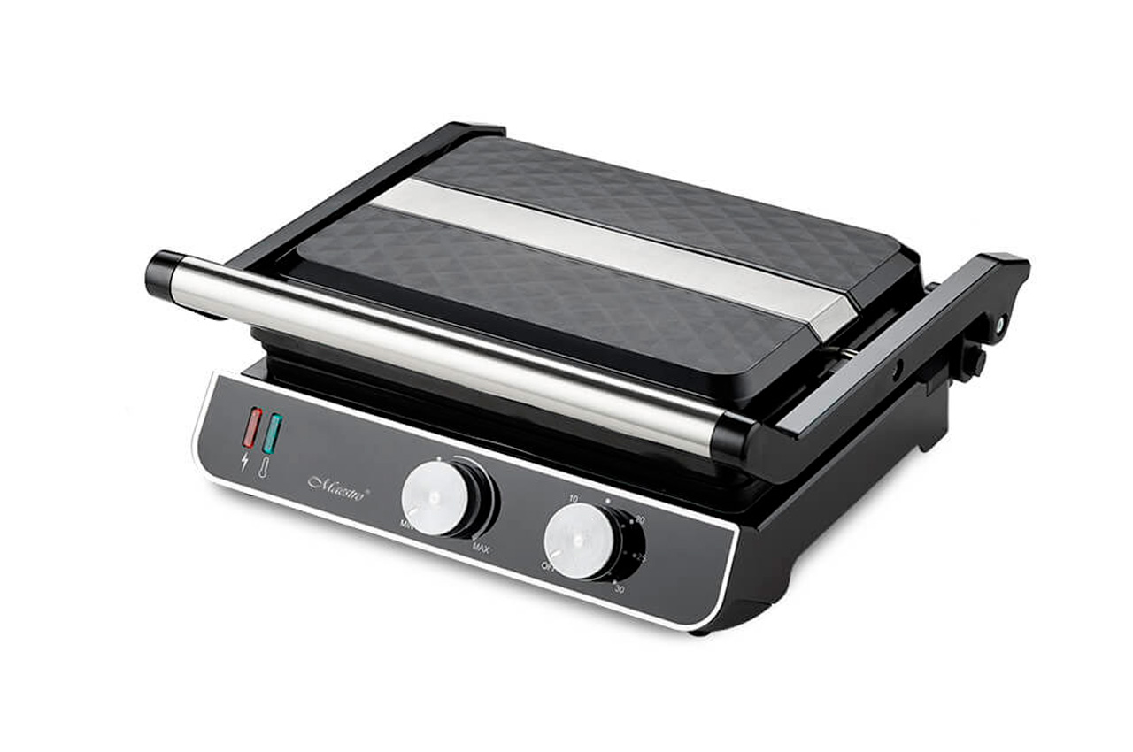 Контактний гриль Маестро MR-722 відмінно підійде для смаження м'яса, овочів, приготування гарячих бутербродів та шаурми. Можна використовувати у розгорнутому на 180 градусах вигляді, як велику сковороду. Нагрівальні пластини мають антипригарну керамічну поверхню, завдяки чому їжа не чіпляється і не пригорає.