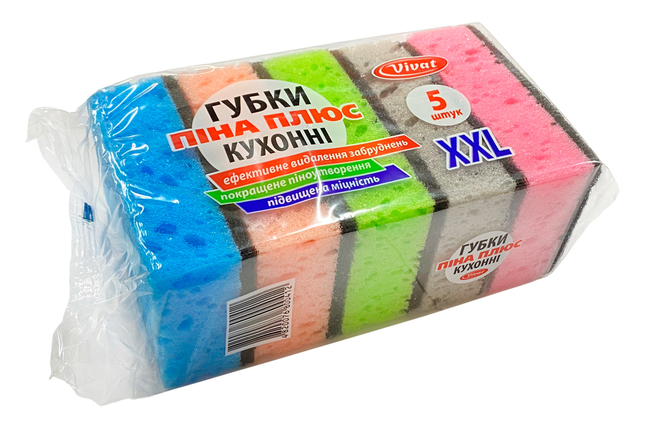Набір із 5 пористих поролонових губок для миття посуду розміром 100 х 70 х 35 мм. Пориста структура дозволяє ефективно видаляти жир та залишки їжі, не дряпаючи поверхні. Губки легко миються, швидко сохнуть та підходять для повсякденного використання на кухні.