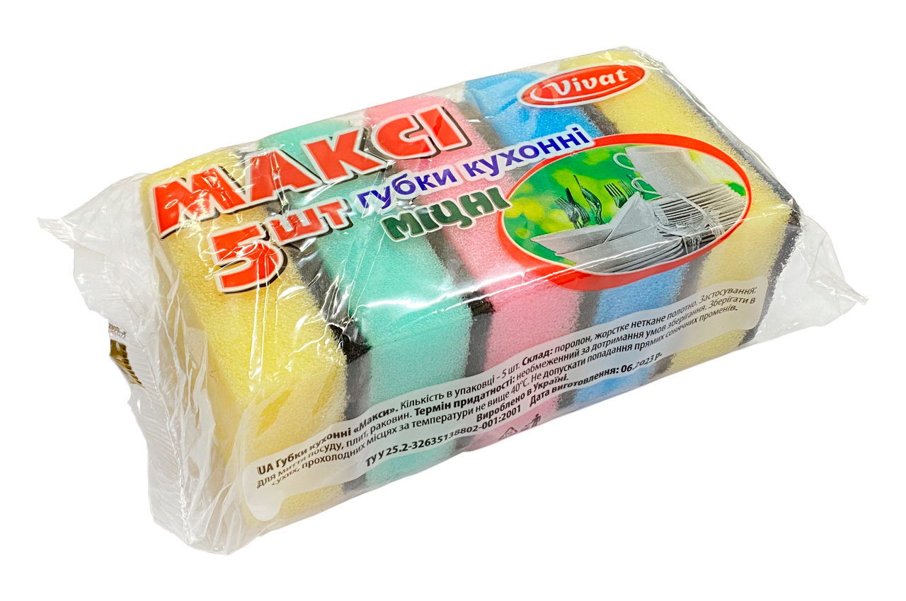Набір із 5 тонких поролонових губок для миття посуду розміром 85 х 55 х 30 мм. Добре вбирають воду, ефективно видаляють залишки їжі та жир, не дряпають поверхні. Підходять для щоденного використання на кухні, легко миються та швидко сохнуть.