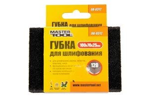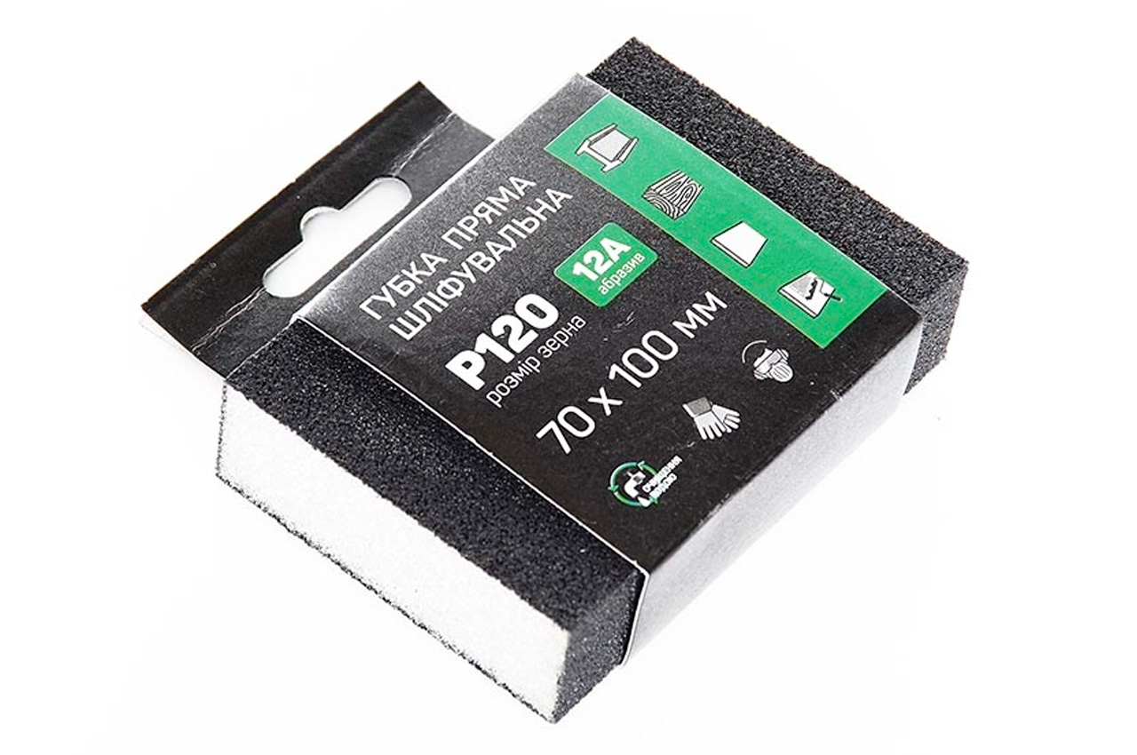 Губка для шліфування призначена для обробки поверхонь перед фарбуванням, обробки пофарбованих поверхонь, лакофарбових покриттів, шпаклівки. Дозволяє використовувати як мокрий, так і сухий метод затірки. Розміри губки: 100 x 70 x 25 мм. Зернистість: P120;
