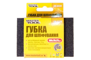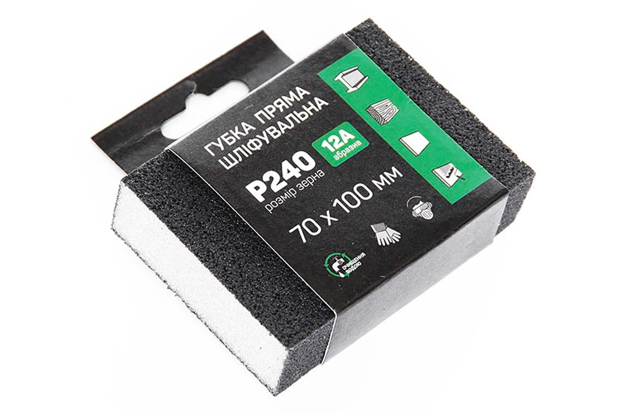 Губка для шліфування призначена для обробки поверхонь перед фарбуванням, обробки пофарбованих поверхонь, лакофарбових покриттів, шпаклівки. Дозволяє використовувати як мокрий, так і сухий метод затірки. Розміри губки: 100 x 70 x 25 мм. Зернистість: P240;