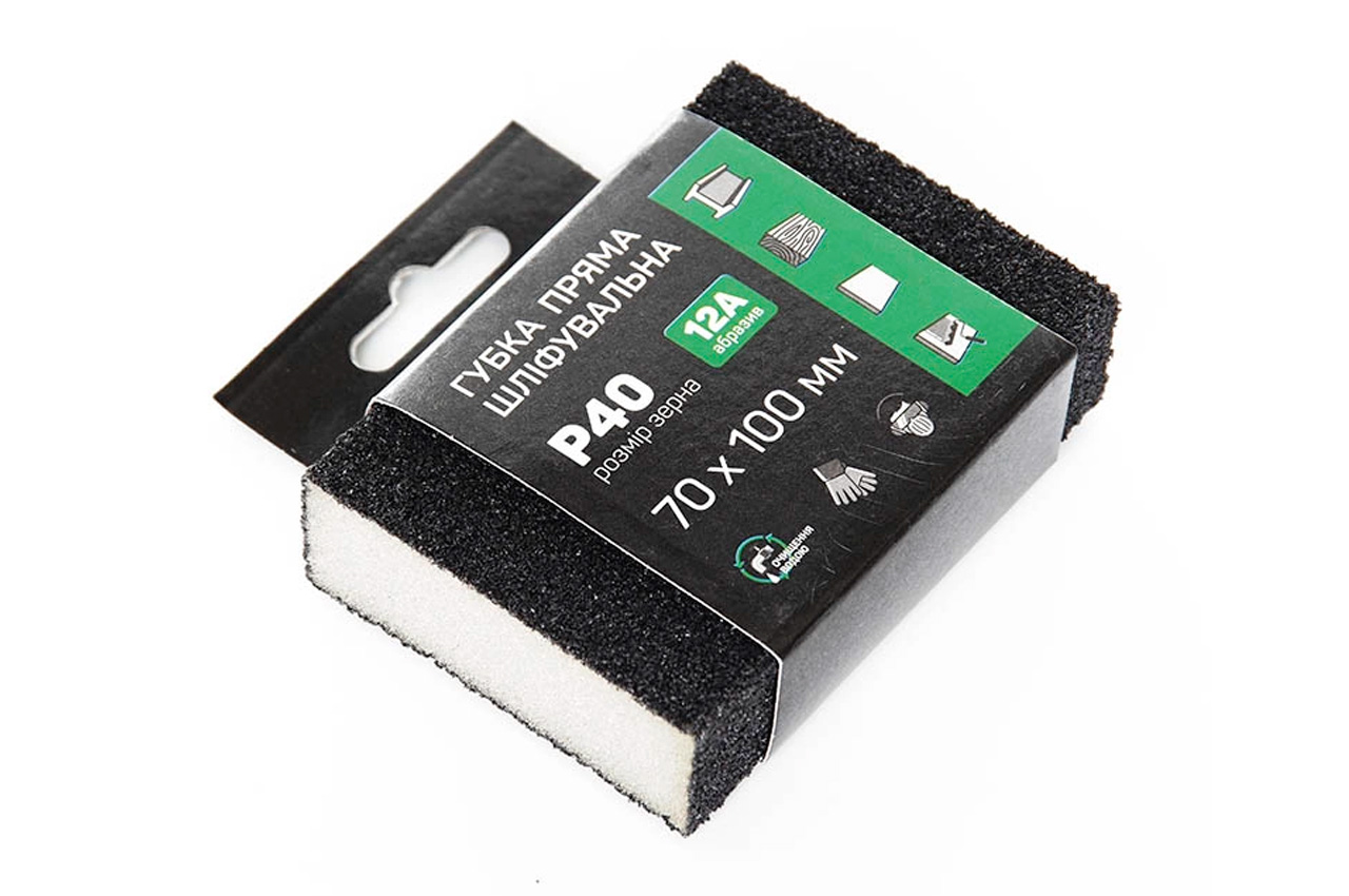 Губка для шліфування призначена для обробки поверхонь перед фарбуванням, обробки пофарбованих поверхонь, лакофарбових покриттів, шпаклівки. Дозволяє використовувати як мокрий, так і сухий метод затірки. Розміри губки: 100 x 70 x 25 мм. Зернистість: 40;