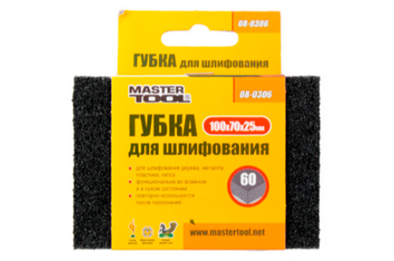 Губка шліфувальна Mastertool - 100 х 70 х 25 мм P60