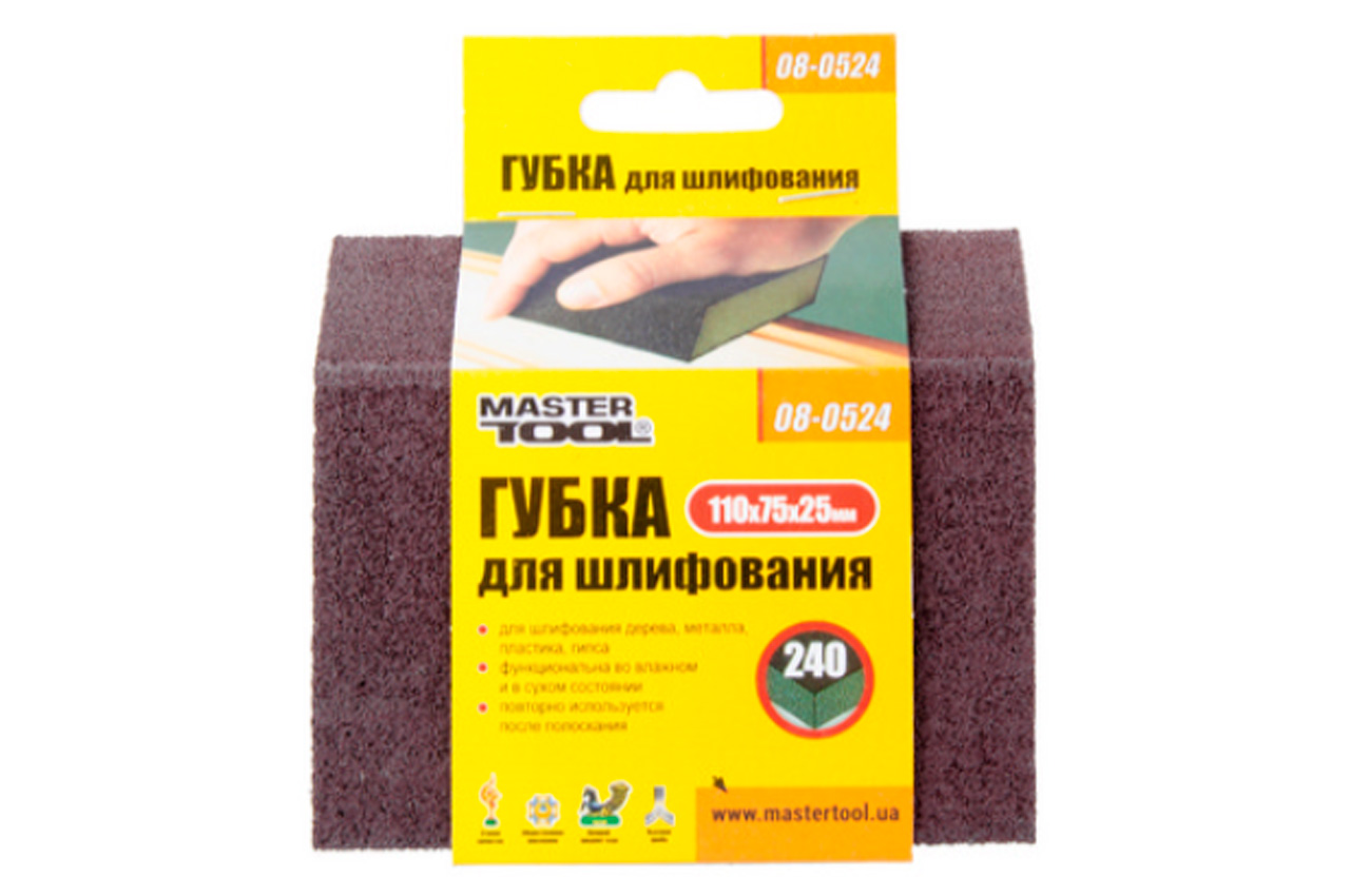 Губка шліфувальна Mastertool - 110 x 75 x 25 мм P240