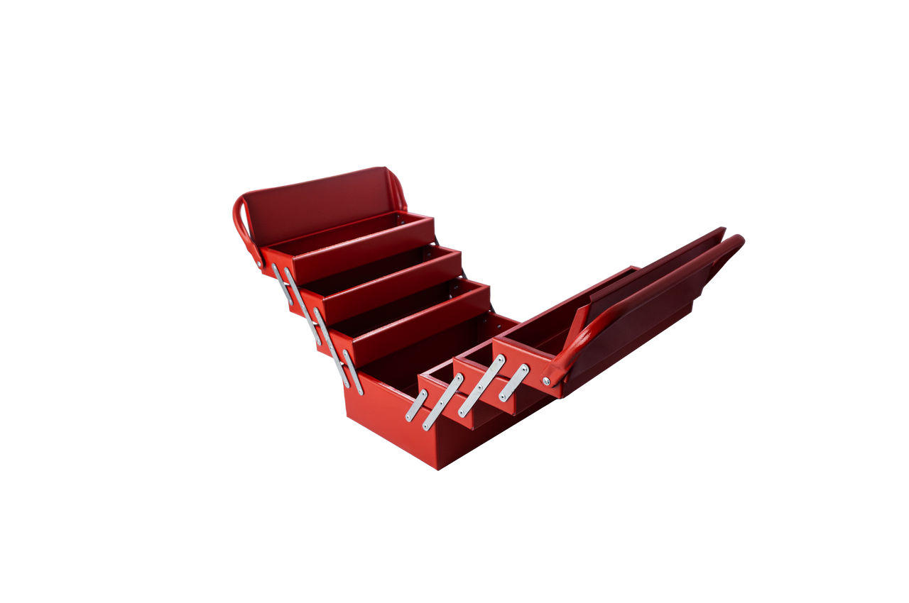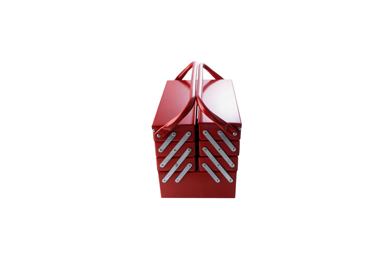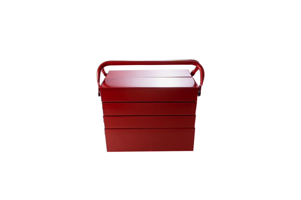 Ящик для зберігання, перенесення інструментів і витратних матеріалів. Складається з одного великого боксу і шести маленьких. Оснащений двома металевими ручками для перенесення. Зручна система доступу до вмісту - малі бокси роз'їжджаються в сторони, забезпечуючи повний огляд внутрішнього простору кожного з них. Якісна сталь і антикорозійне покриття гарантує довгий термін служби ящика.