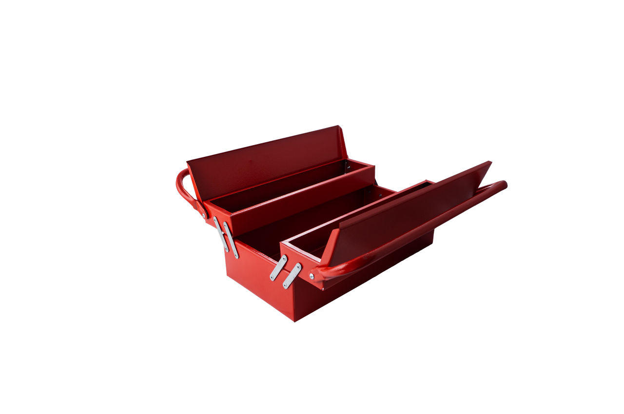 Ящик для зберігання, перенесення інструментів і витратних матеріалів. Складається з одного великого боксу і двох маленьких. Оснащений двома металевими ручками для перенесення. Зручна система доступу до вмісту - малі бокси роз'їжджаються в сторони, забезпечуючи повний огляд внутрішнього простору кожного з них. Якісна сталь і антикорозійне покриття гарантує довгий термін служби ящика.