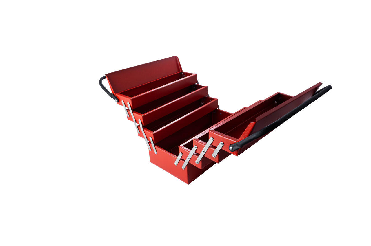 Ящик для зберігання, перенесення інструментів і витратних матеріалів. Складається з одного великого боксу і шести маленьких. Оснащений двома металевими ручками для перенесення. Зручна система доступу до вмісту - малі бокси роз'їжджаються в сторони, забезпечуючи повний огляд внутрішнього простору кожного з них. Якісна сталь і антикорозійне покриття гарантує довгий термін служби ящика.