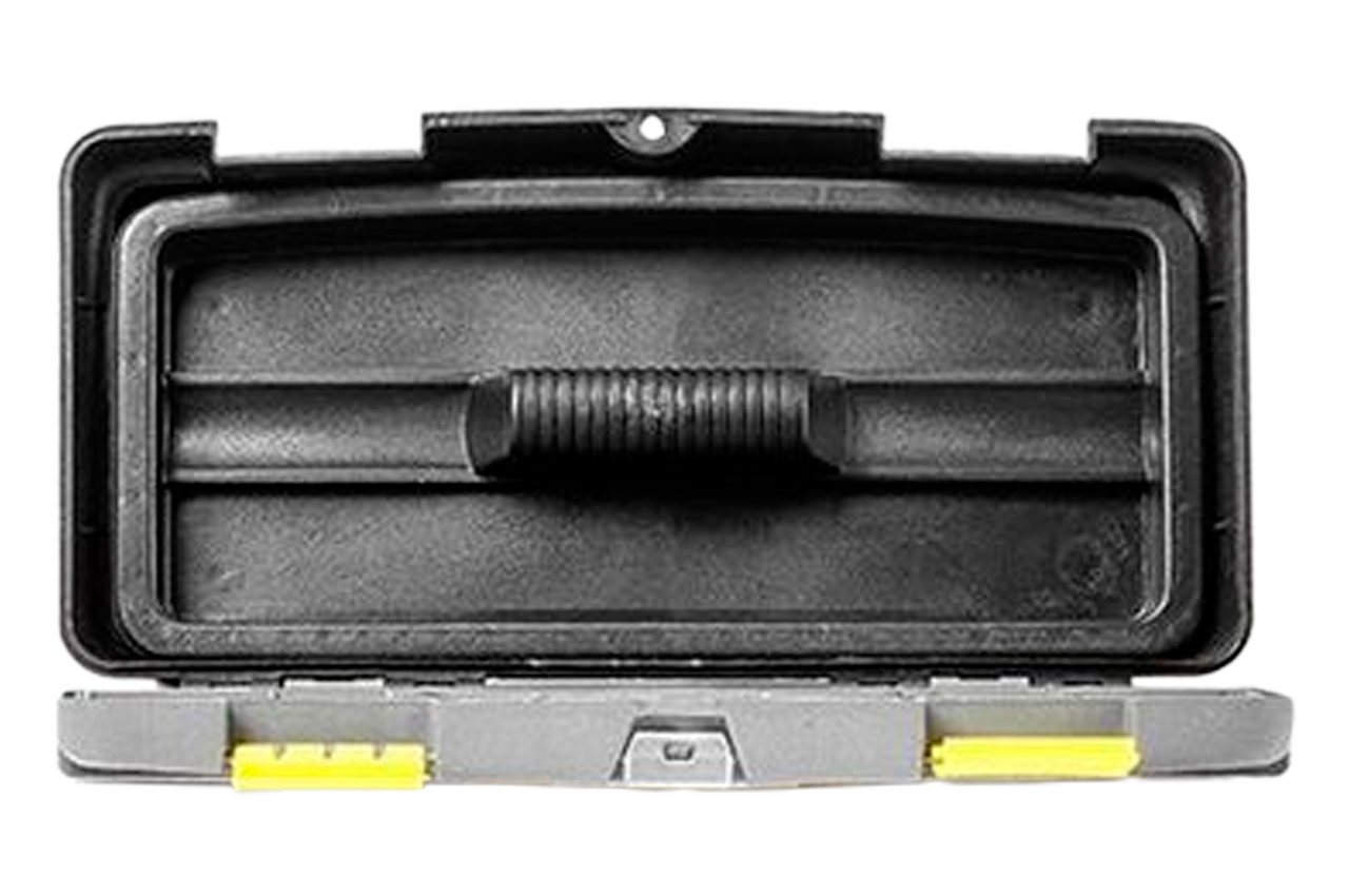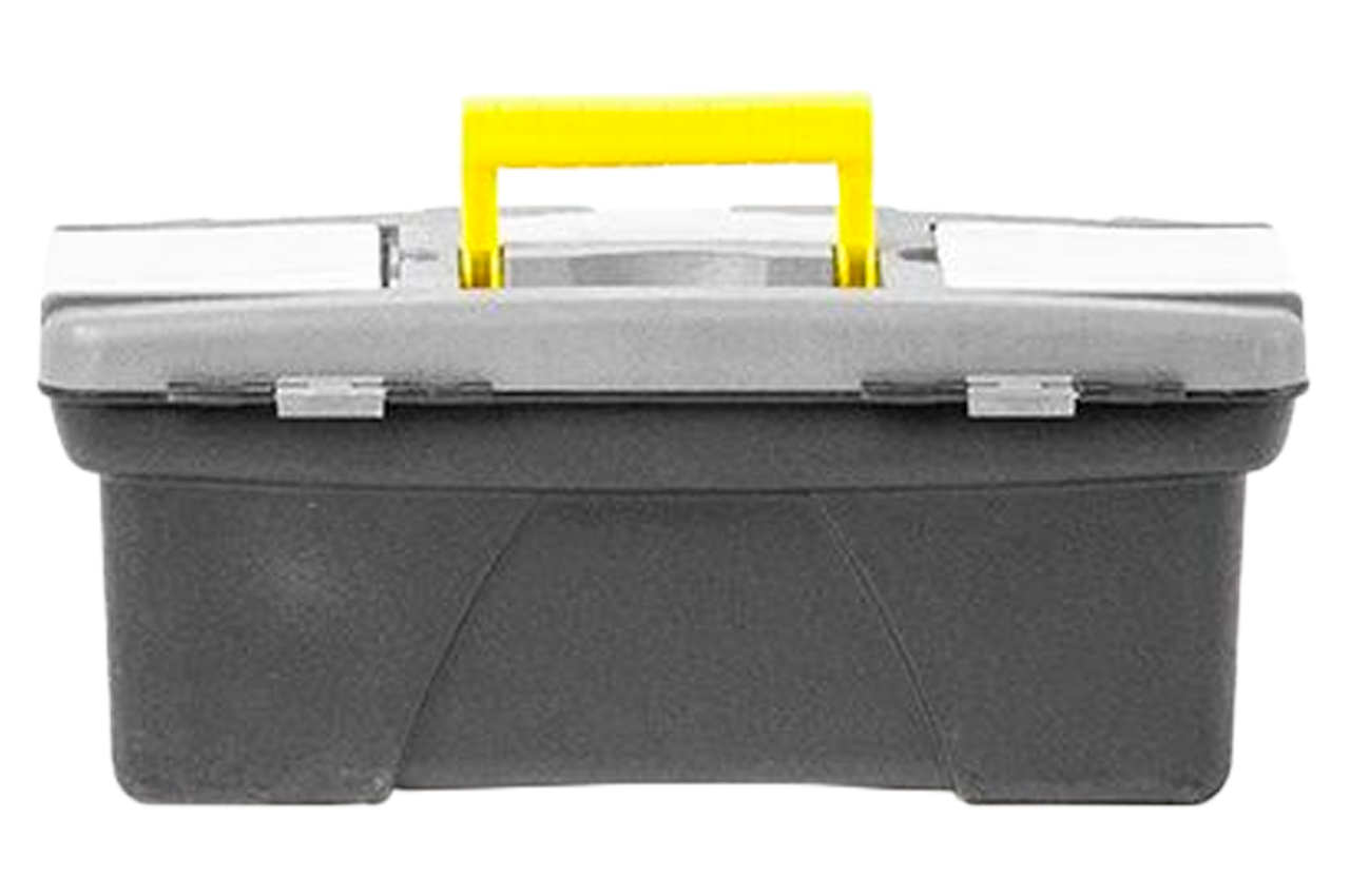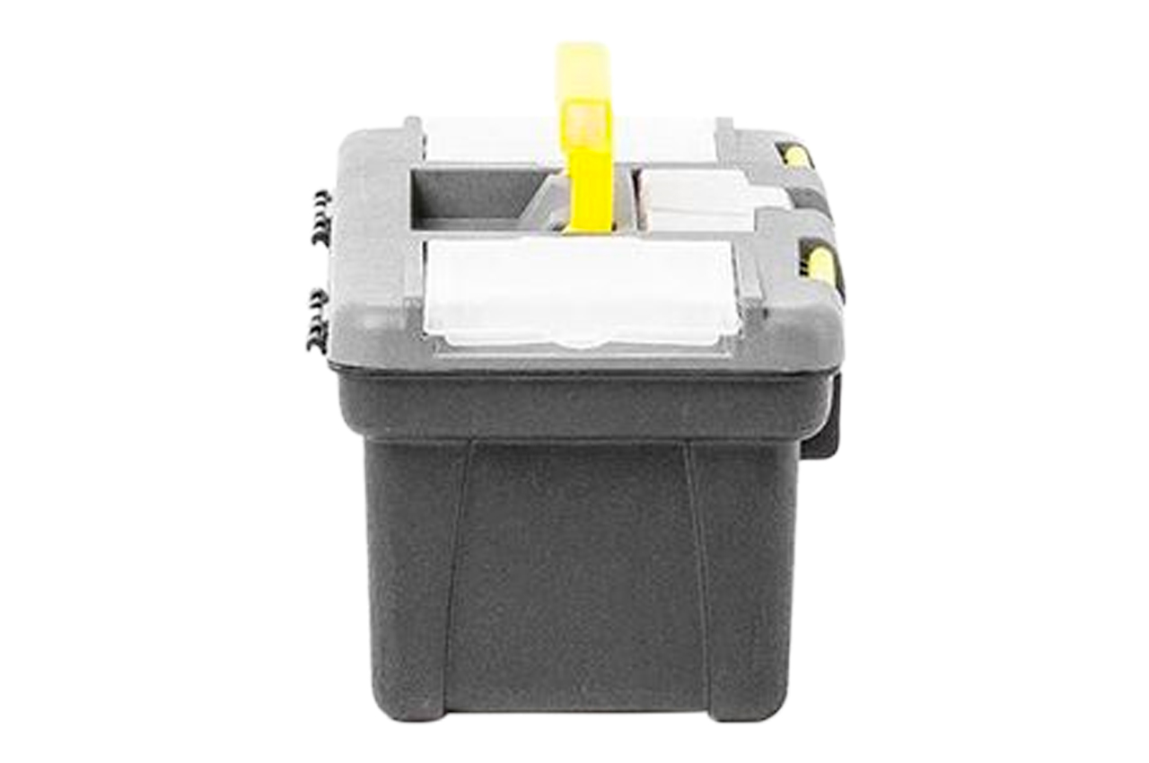 Ящик для інструменту практичний і зручний у використанні. На кришці розташовані два окремих знімних органайзера з різноманітними осередками, які відмінно підійдуть для зберігання метизів або будь-який інший дрібниці. Там же розташований відділ для зберігання отверточних насадок, який закривається прозорою кришкою. Габаритні розміри: 300х154х124 мм