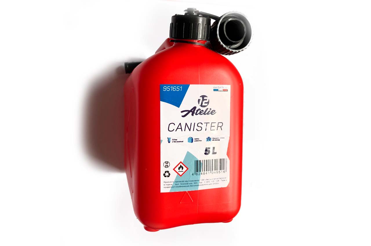 Каністра пластикова виготовлена із антистатичного поліетилену високої міцності. Має маркування, що дозволяє використовувати каністру для транспортування бензину та дизельного палива, а також олії. Каністра комплектується гнучким шлангом для заправки палива у бак.