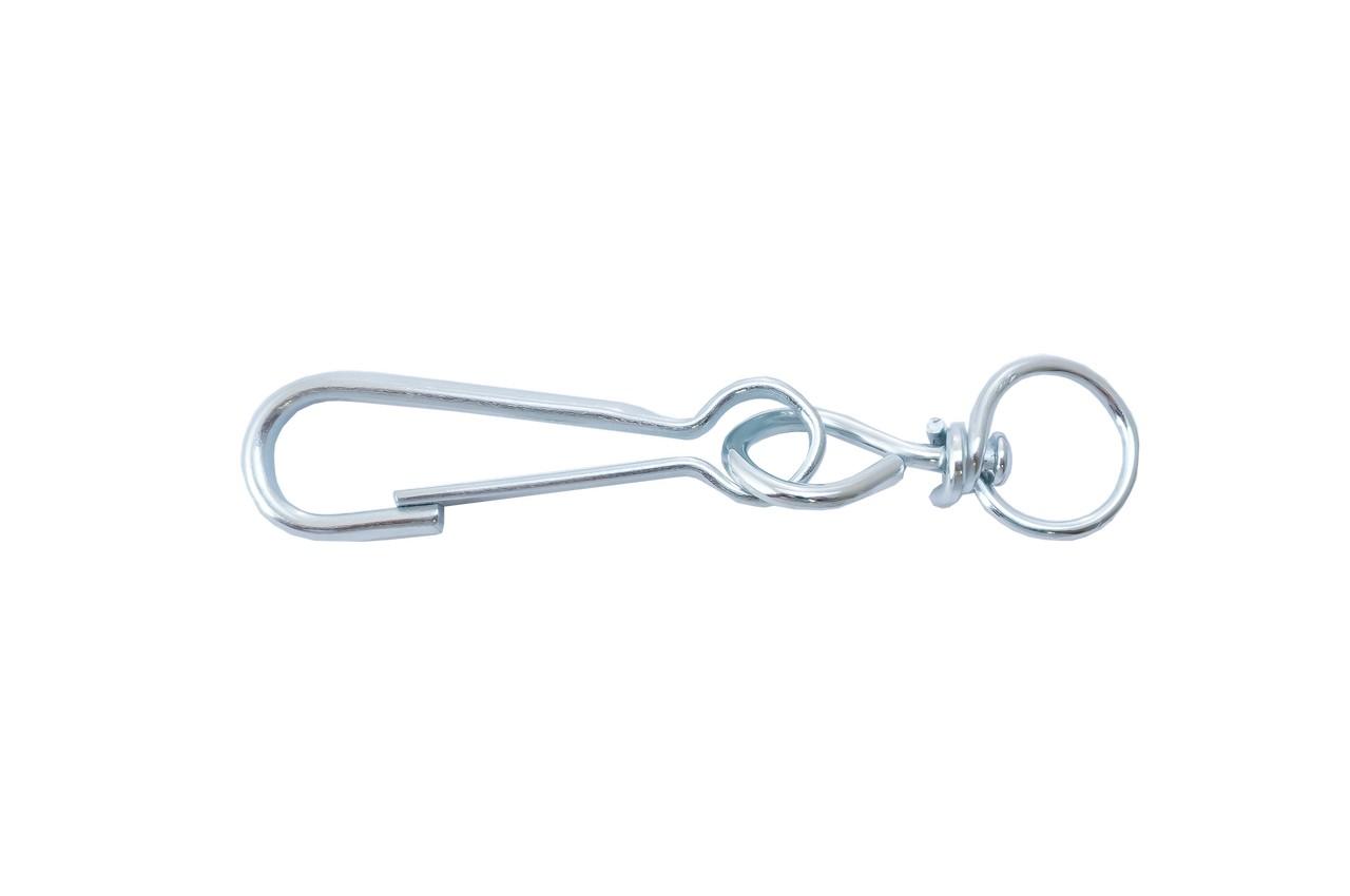 Карабін пружинний з вертлюгом Apro служить для проведення вантажно-розвантажувальних робіт, закріпленні рознімного кріплення тросів, канатів, ланцюгів і т.п. Матеріал: вуглецева сталь. Покриття: оцинкований.