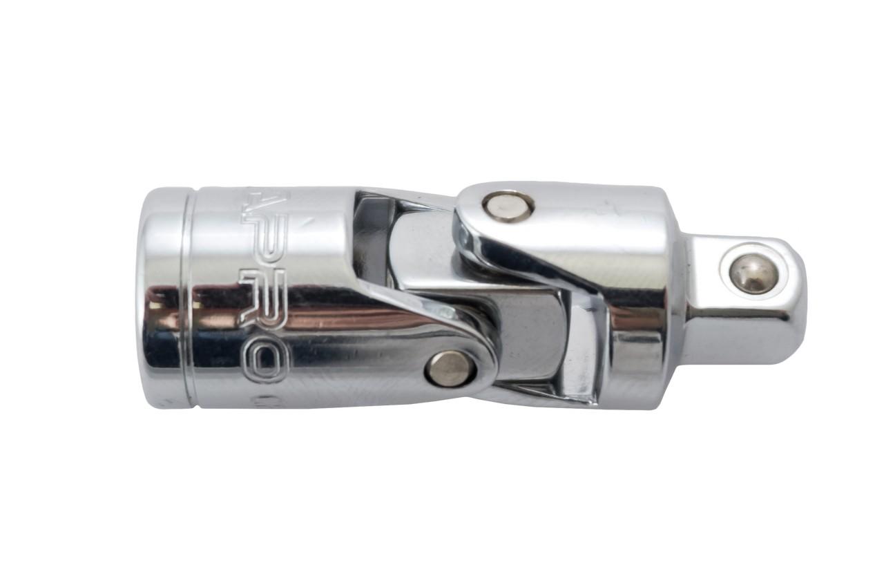 Карданний перехідник Apro - Застосовується як допоміжний інструмент при монтажі та демонтажі різьбових з'єднань. Кардан є головкою з шарнірним перехідником і посадковим квадратом. Зовнішній та внутрішній квадрати мають однаковий розмір 1/4".