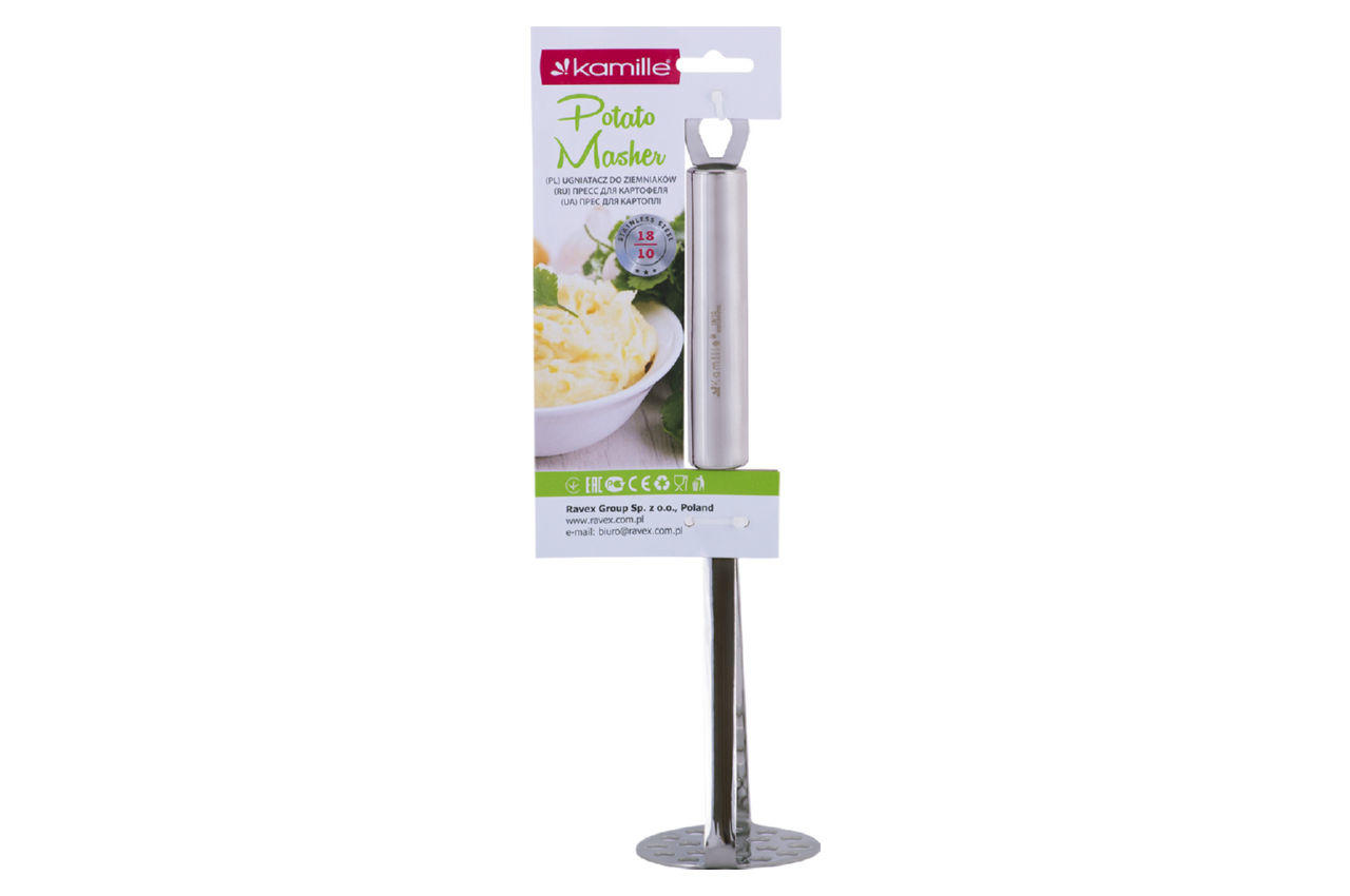 Картофелемялка Kamille - зручний та практичний прес для картоплі. Товка виконана з високоякісної нержавіючої сталі, виріб легко чиститься і має отвір для підвішування.