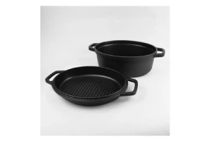 Сучасний ергономічний дизайн. Внутрішнє покриття: антипригарне. Міцний литий алюміній. Зовнішнє термостійке покриття. Индукционное дно на каструлі. Индукционное дно на сковороді гриль.