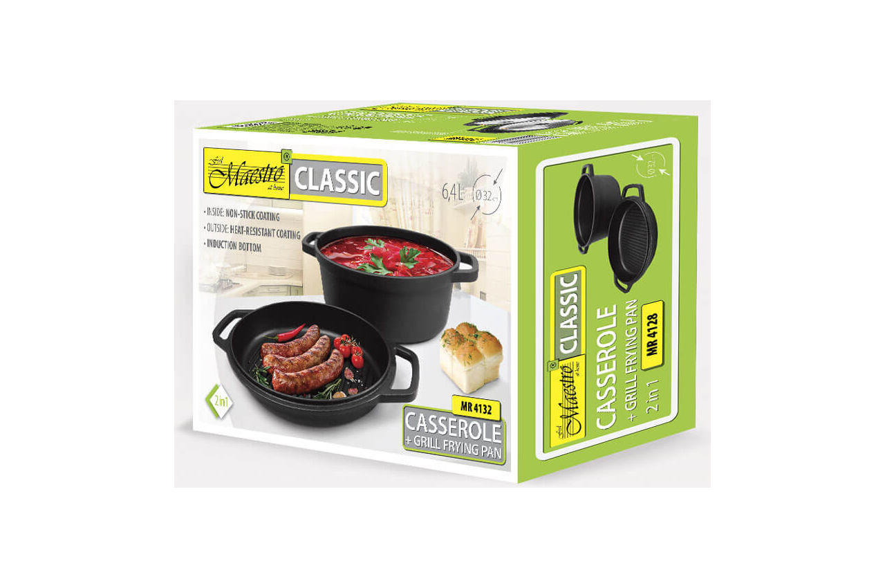 Каструля антипригарна Maestro - 320 мм x 6,4 л з кришкою-сковорідкою