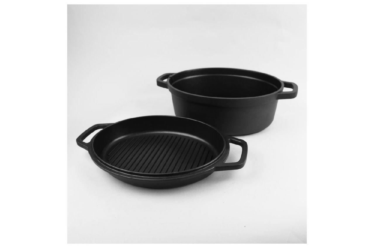 Сучасний ергономічний дизайн. Внутрішнє покриття: антипригарне. Міцний литий алюміній. Зовнішнє термостійке покриття. Индукционное дно на каструлі. Индукционное дно на сковороді гриль.