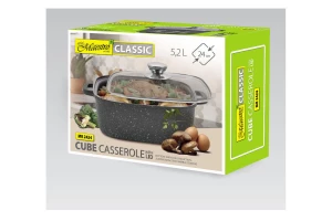 Каструля об'ємом 3,8 літрів виготовлена з міцного литого алюмінію з внутрішнім антипригарним керамічним покриттям, володіє зручними ручками, що не нагріваються, і скляною кришкою з отвором для виходу пари. Підходить для всіх джерел тепла, включаючи індукцію.