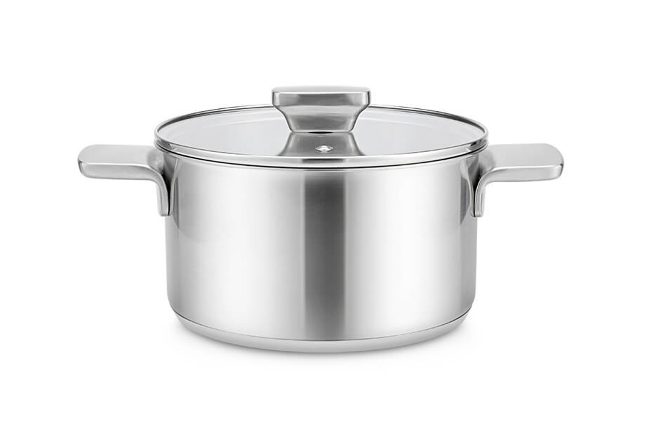 Каструля Maestro MR 3521-20 об'ємом 3,4 літра, виготовлена з високоякісної нержавіючої сталі. Модель має привабливий строгий дизайн з прямою стінкою, однакового діаметра на будь-якій висоті та рівну скляну кришку з отвором для виходу пари та захисним обідком з нержавіючої сталі по периметру. Ручки кріпляться до корпусу точковим зварюванням без заклепок. Товсте багатошарове дно з алюмінієвою вставкою сприяє швидкому та рівномірному розподілу тепла.