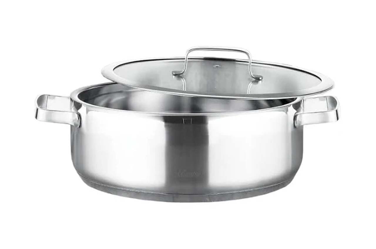 Матеріал - високоякісна нержавіюча сталь. Багатошарове термоаккумулирующее дно. Зручні металеві ручки. Підходить для всіх типів плит і варильних поверхонь. Можна мити в посудомийній машині. Кришка з термостійкого скла з отвором для випуску пари