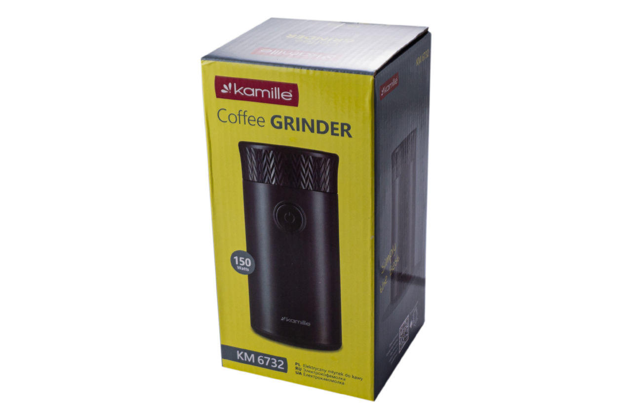 Кавомолка Kamille KM 6732 виготовлена з міцних та зносостійких матеріалів. Корпус – екопластик. Пластикова прозора кришка допоможе комфортно спостерігати процес помелу. Сталеві ножі мають якісне заточування, яке зберігається протягом тривалого часу гарантую високу якість помелу. Потужність кавомолки становить 150 Вт, що цілком достатньо для досягнення високої продуктивності. Місткість для завантаження зерен дозволяє за один раз перемолоти до 75 г кави. Відділення для електрошнура забезпечить зручне зберігання приладу.