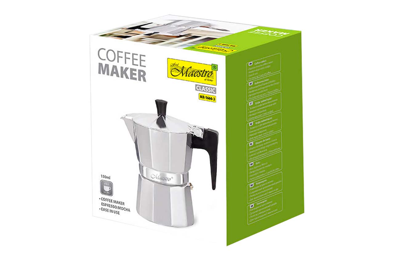 Кавоварка Maestro MR-1666-3 стане Вашим помічником на кухні для приготування чудового напою. Розрахована на 3 чашок кави. Великим плюсом цієї кавоварки є простота приготування кави та легкий догляд. Ви отримаєте задоволення від ароматного напою з гейзерною кавоваркою Maestro MR-1666-3, яка приготує каву за 2 хвилини. Забудьте про каву машин, які необхідно постійно чистити та обслуговувати