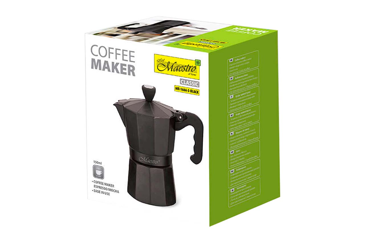 Кавоварка Maestro MR-1666-3 стане Вашим помічником на кухні для приготування чудового напою. Розрахована на 3 чашок кави. Великим плюсом цієї кавоварки є простота приготування кави та легкий догляд. Ви отримаєте задоволення від ароматного напою з гейзерною кавоваркою Maestro MR-1666-3, яка приготує каву за 2 хвилини. Забудьте про каву машин, які необхідно постійно чистити та обслуговувати