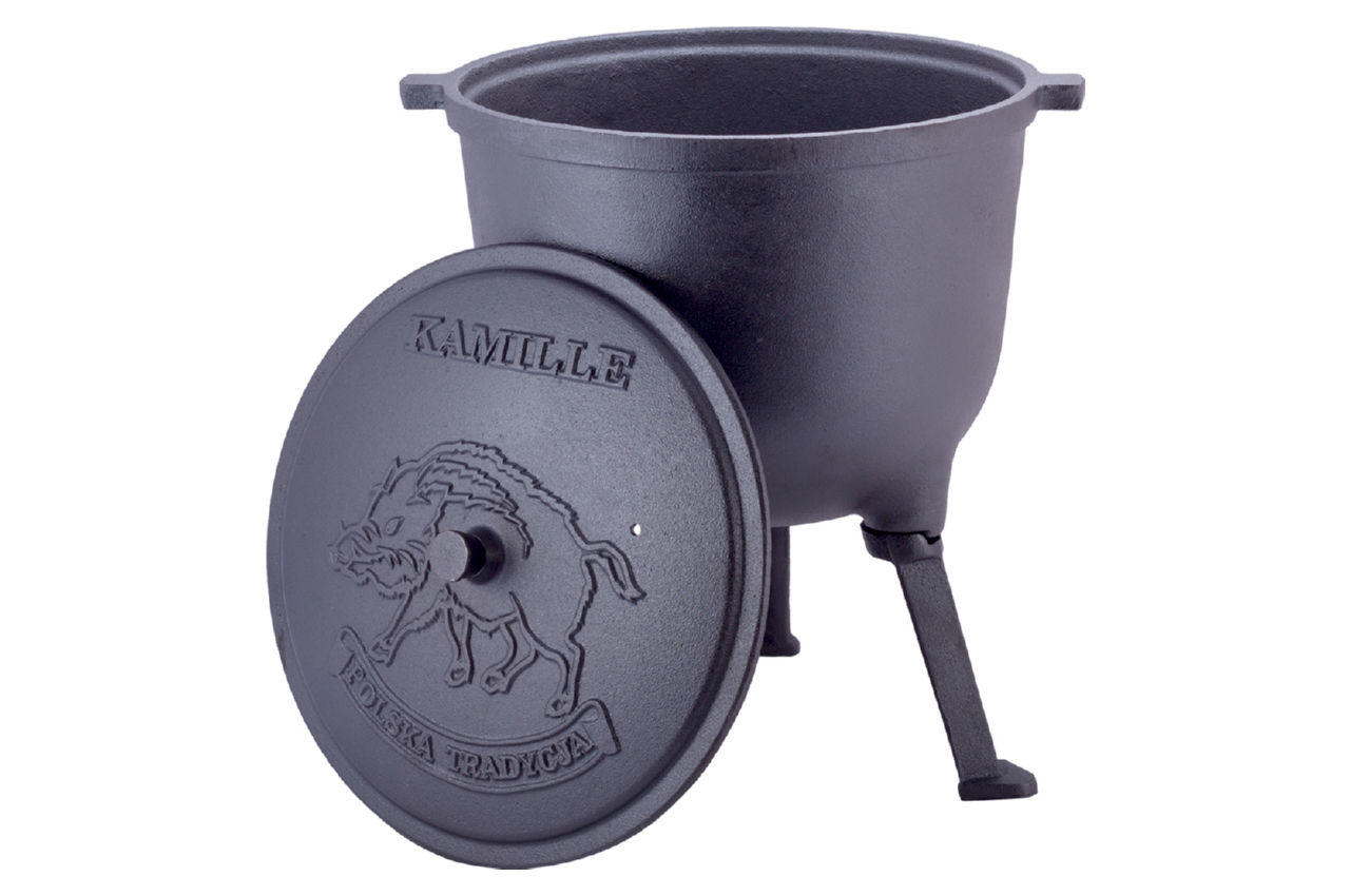 Казан Kamille — ексклюзивна пропозиція нашого інтернет-магазину. Завдяки міцному емальованому покриттю, такий казан стійкий до механічних впливів, за рахунок чого значно збільшується термін його служби. Казан нагрівається рівномірно, не створюючи перегрітих ділянок і холодних країв, навіть у тих випадках, коли процес приготування їжі йде на невеликому вогні. У результаті скорочується час приготування страви і зменшується ризик є суміш недосмажене або пережареної їжі. Вже після першого використання казана Ви будете дивуватися, як могли обходиться без неї раніше. Казанок чавунний на ніжках з кришкою та кріпленням об'ємом 10л. Верхній діаметр: 30см. Висота казанка: 22,5 см. Висота ніжок 14,5 див. Матеріал кришки: чавун