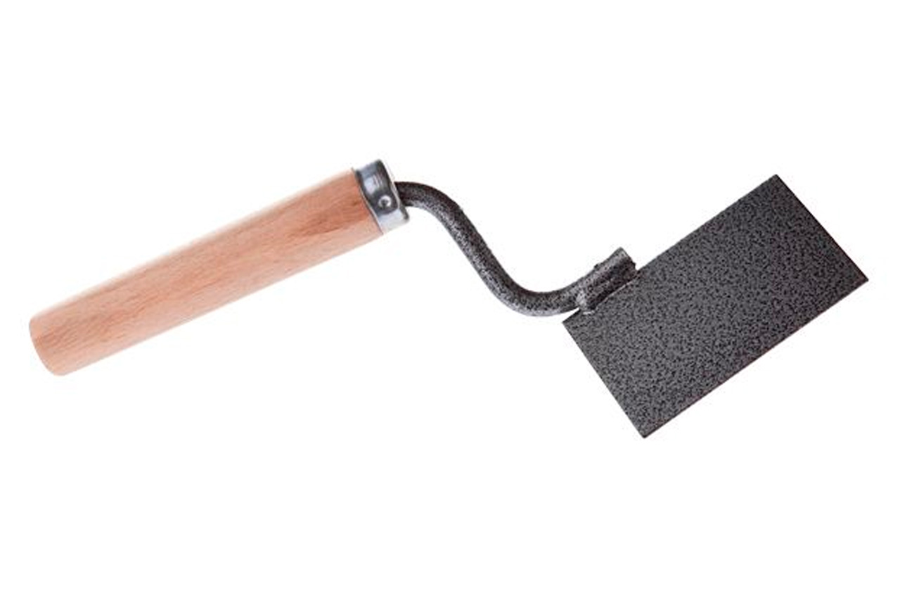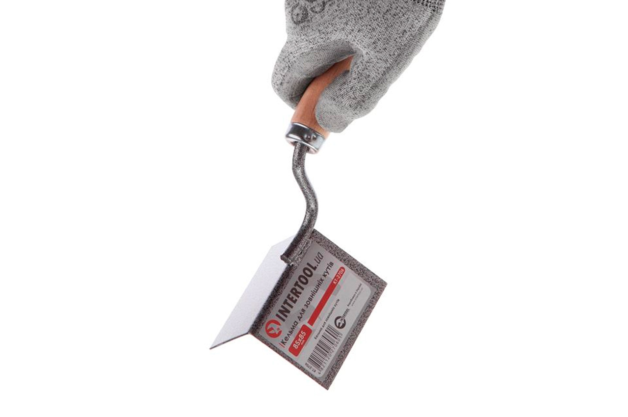 Кутова кельма призначена для комфортного і зручного розподілу розчинів на зовнішніх кутах. Молоткове покриття кельми дозволить уникнути появи корозії на інструменті і значно продовжити термін його служби. Розмір платформи: 85х85 мм; Особливості: молоткове покриття