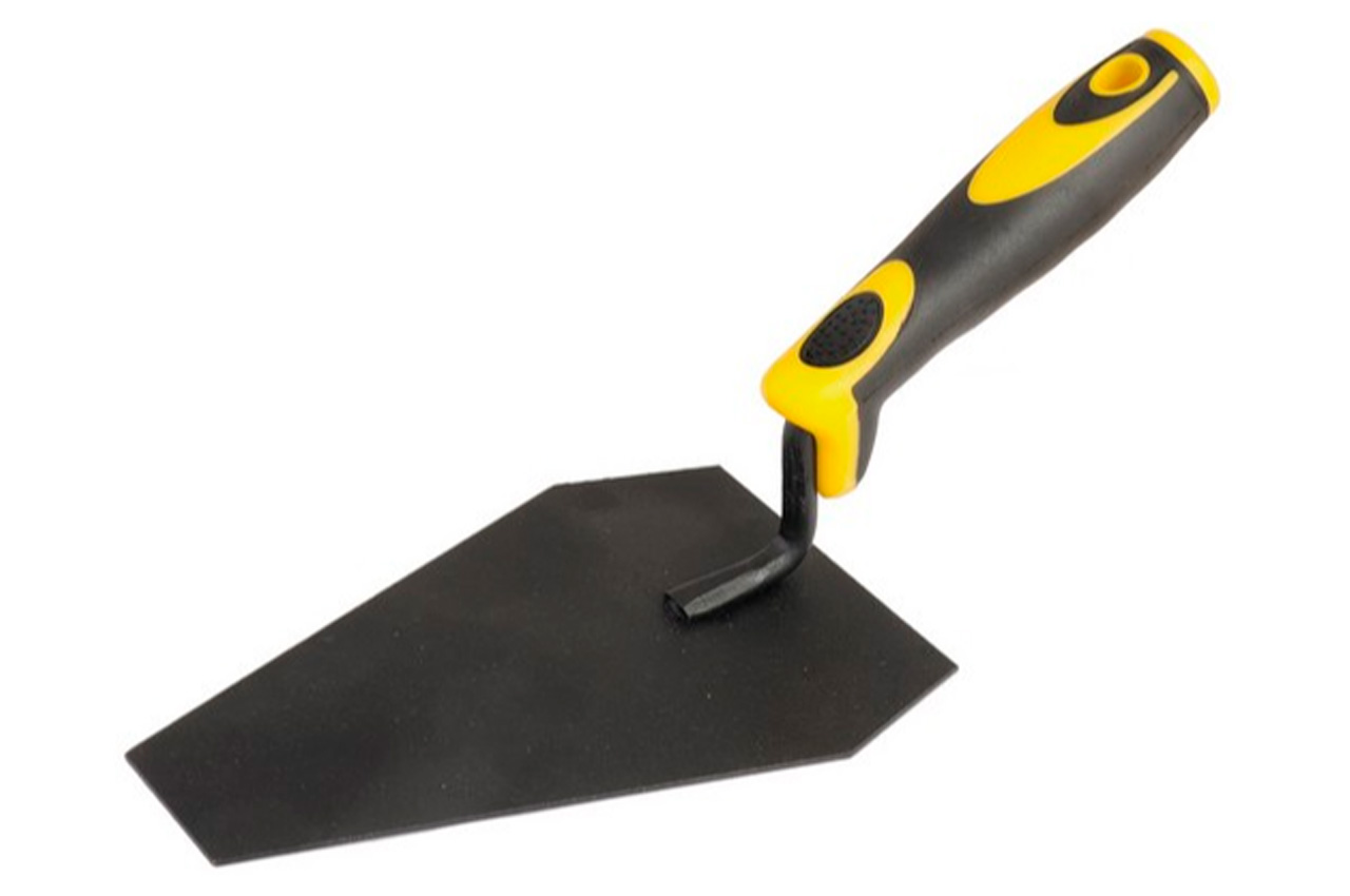 Має форму усіченої з боків трапеції. Призначена для робіт з плиткою, розмішування і нанесення будівельних розчинів. • сталь 1.2 мм • порошкове фарбування • двокомпонентна рукоятка