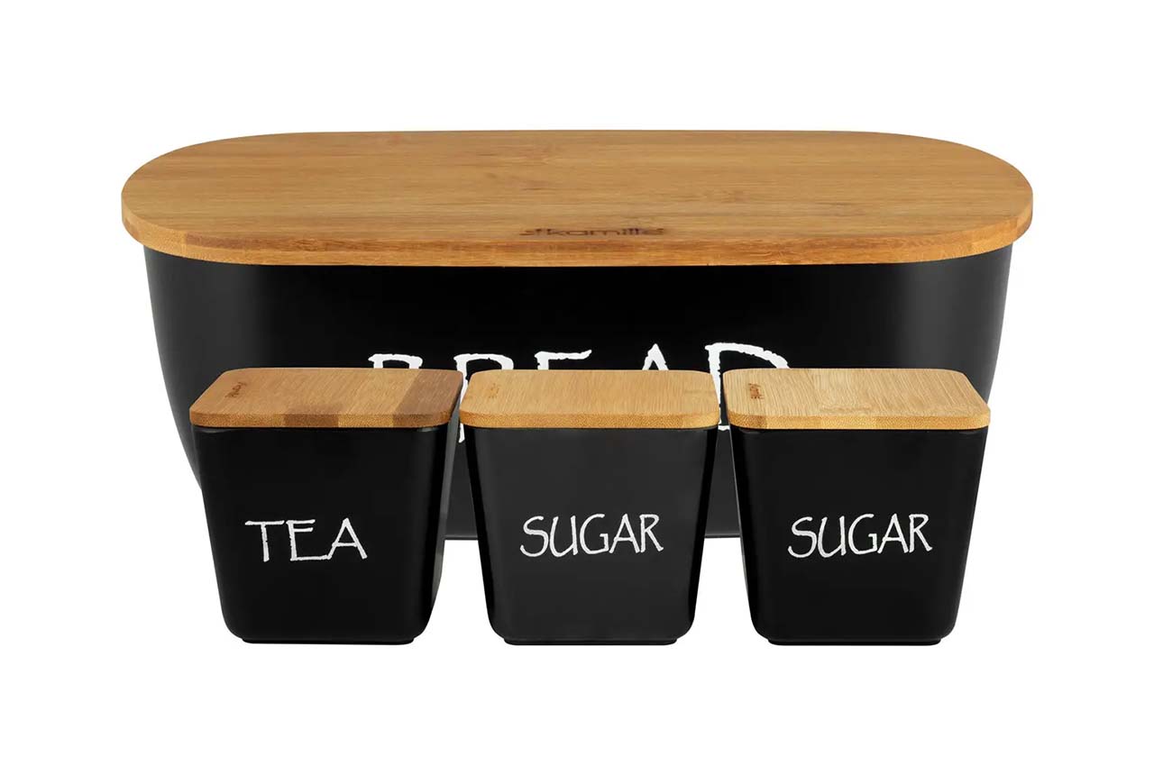 Хлібниця бамбукова Kamille – 360 x 202 x 135мм + 3 ємності чорна