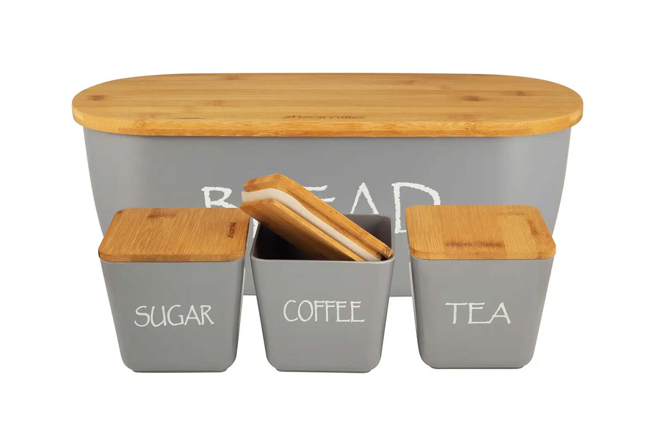 Хлібниця бамбукова Kamille – 360 x 202 x 135мм + 3 ємності сіра