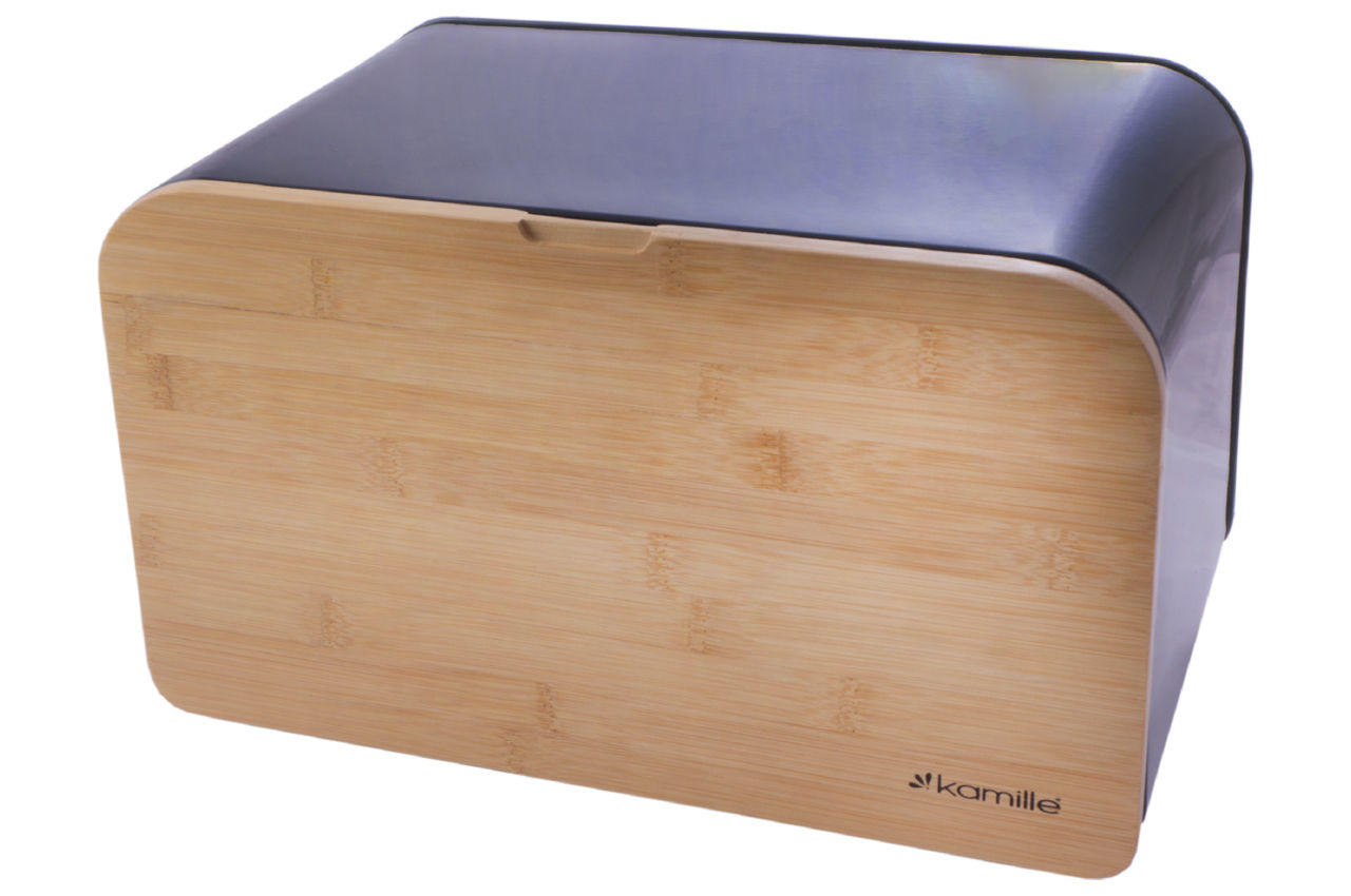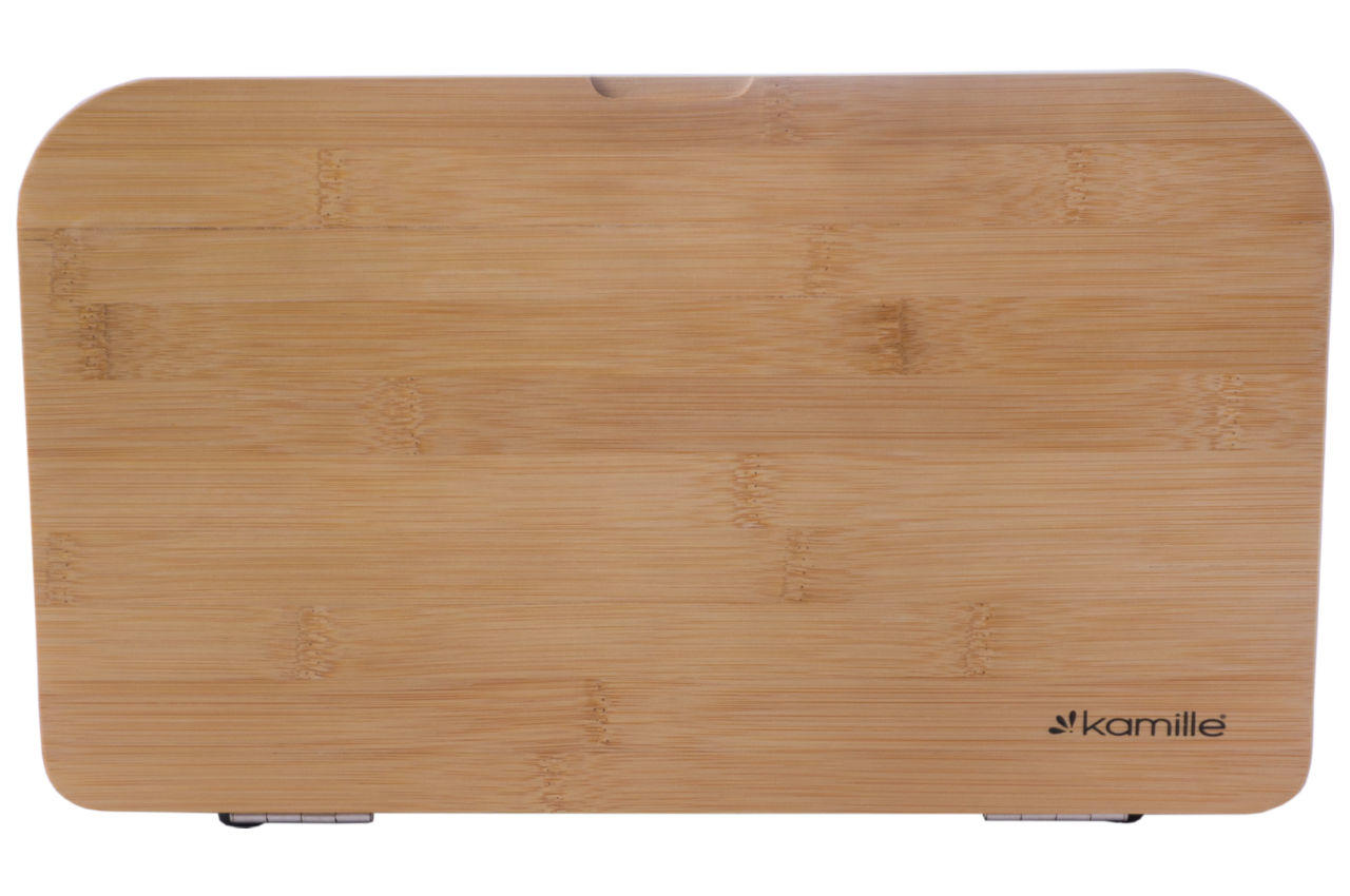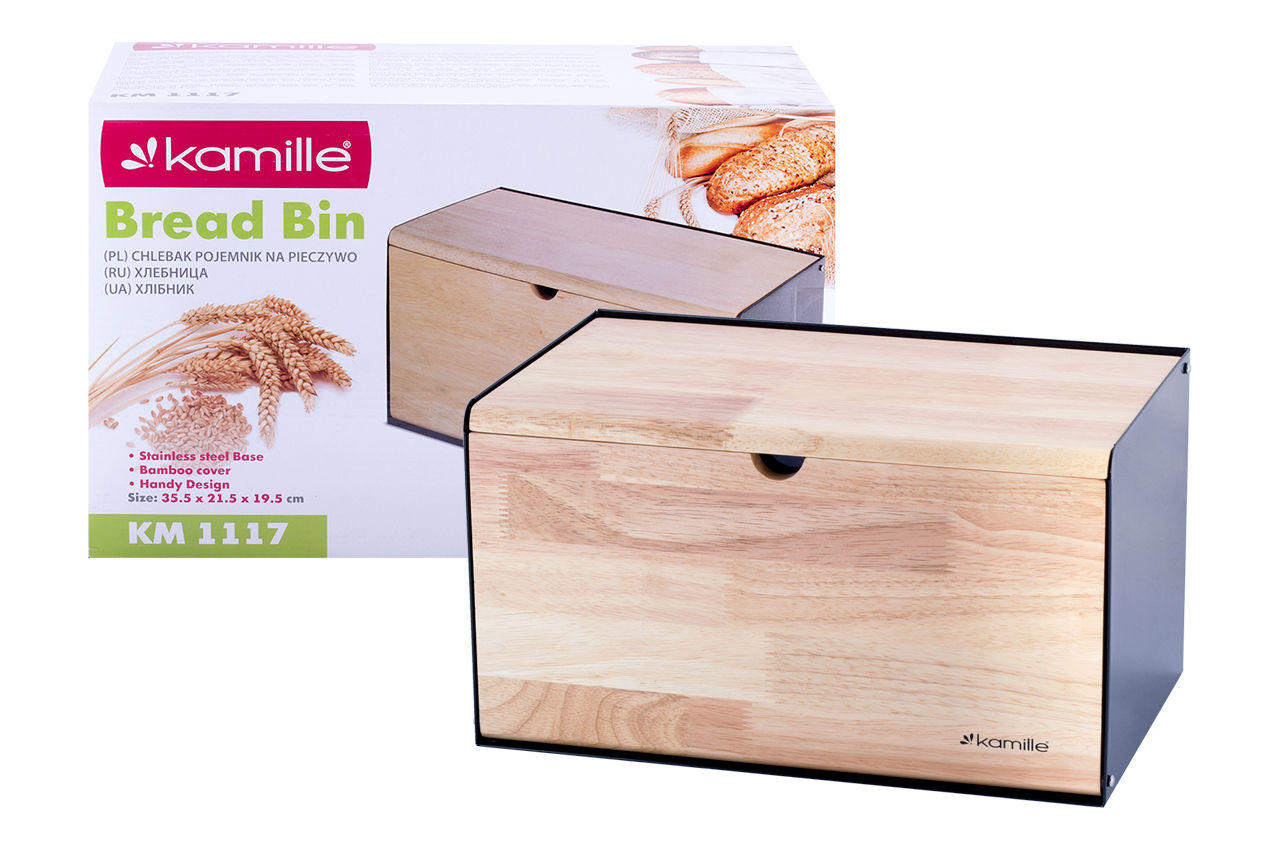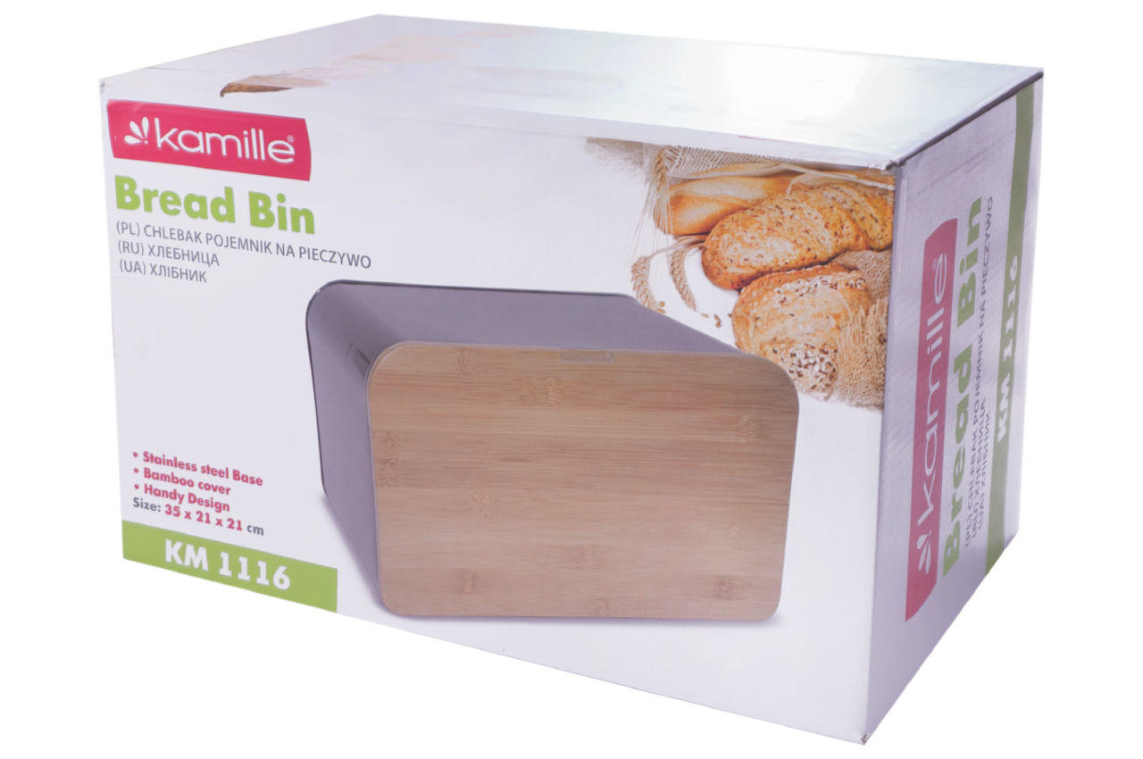 Хлібниця Kamille - красива і вишукана модель такої хлібниці оригінально буде виглядати на Вашому кухонному столі. Хлібниця буде завжди стильно виглядати на столі, а властивості нержавіючої сталі не змусять вас засумніватися в якості посуду.