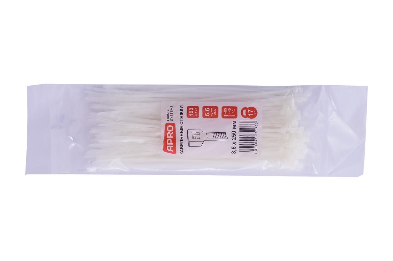 Хомут пластиковий Apro - 3,6 x 250 мм білий (100 шт.)