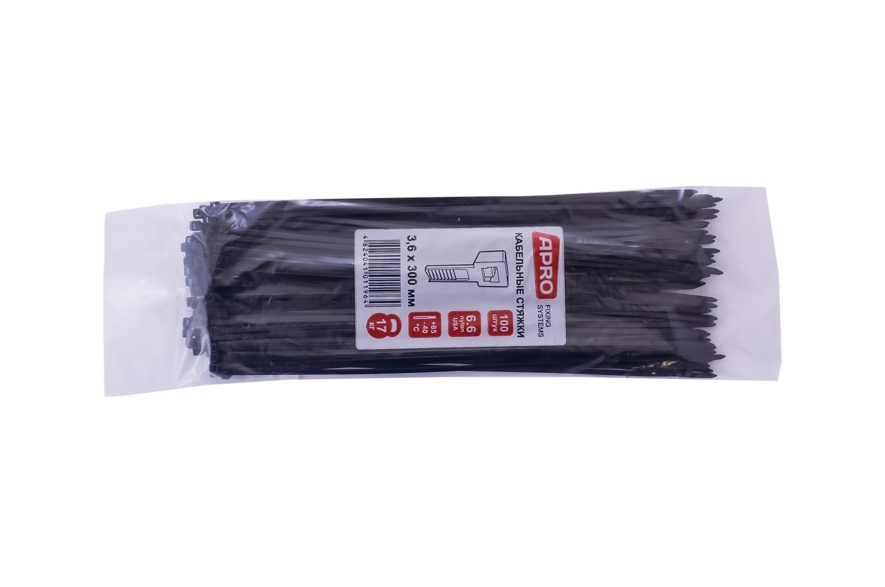 Хомут пластиковий Apro - 3,6 x 300 мм чорний (100 шт.)