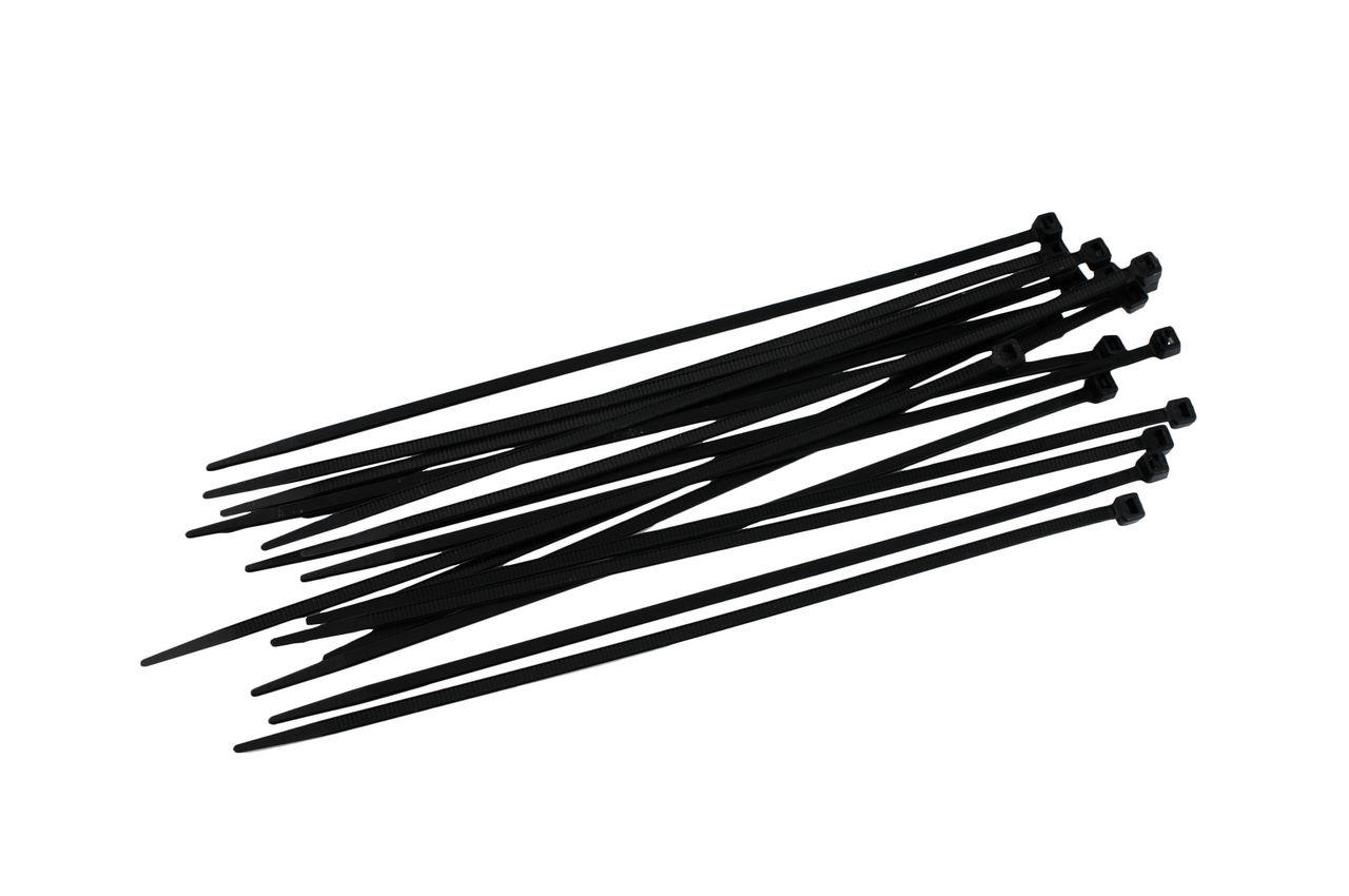 Хомут пластиковий (стяжка нейлонова) - стрічковий хомут, призначений для об'єднання проводів і кабелів в джгути (бондаж), а також кріплення до несучих елементів і напрямних при прокладанні трас. Колір чорний; Кількість в упаковці: 100 од.