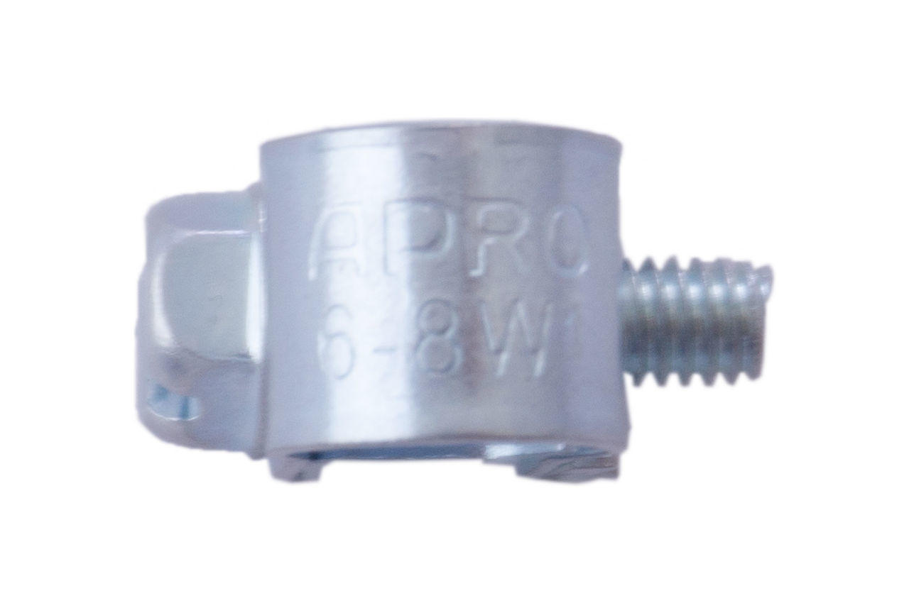 Хомут силовий Apro - гвинт, гайка та стрічка з оцинкованої сталі. Гайка кріплення зафіксована в пазу та не випадає навіть після видалення гвинта. Гвинт має шестигранну головку з прорізом, що дозволяє затягувати хомут за допомогою гайкового ключа або викрутки. Використовується для затискання рукавів з невеликою товщиною стінки або невеликим внутрішнім діаметром.